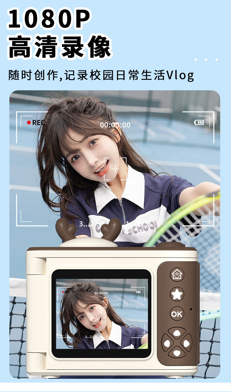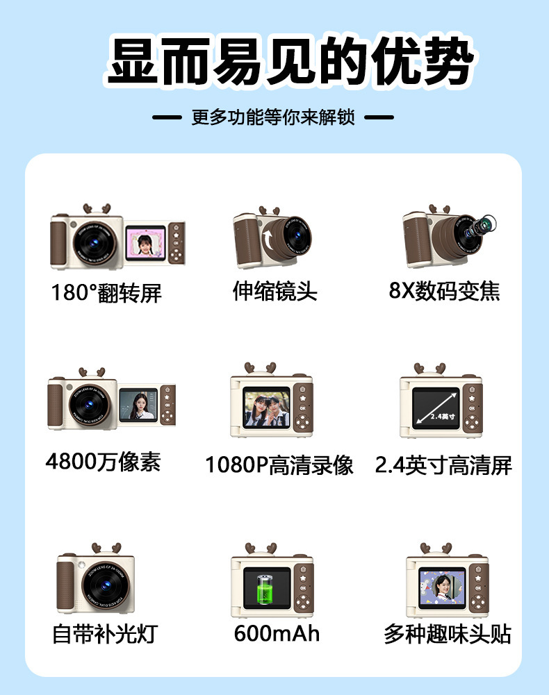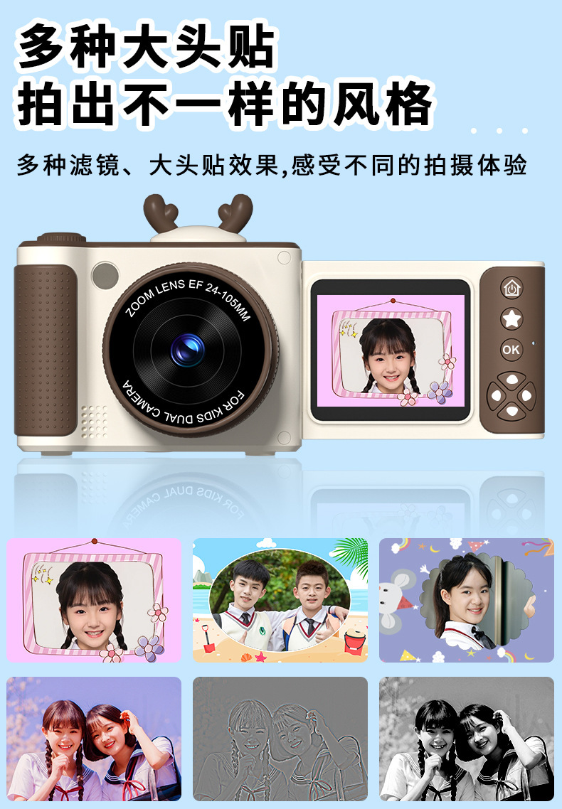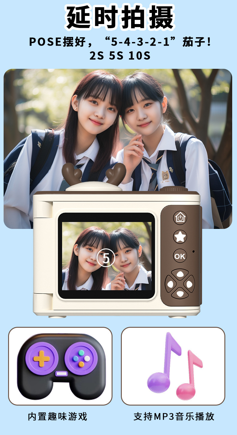 S6 디지털 카메라 플립 스크린 카메라 학생 파티 높은 색상 가치 어린이 만화 카메라 HD 학생 카메라 선물