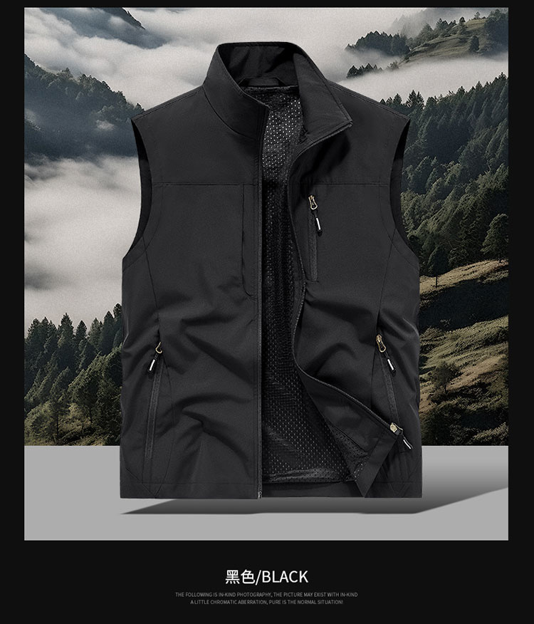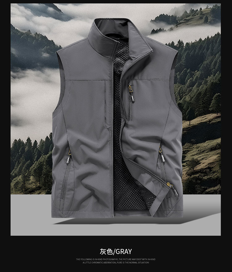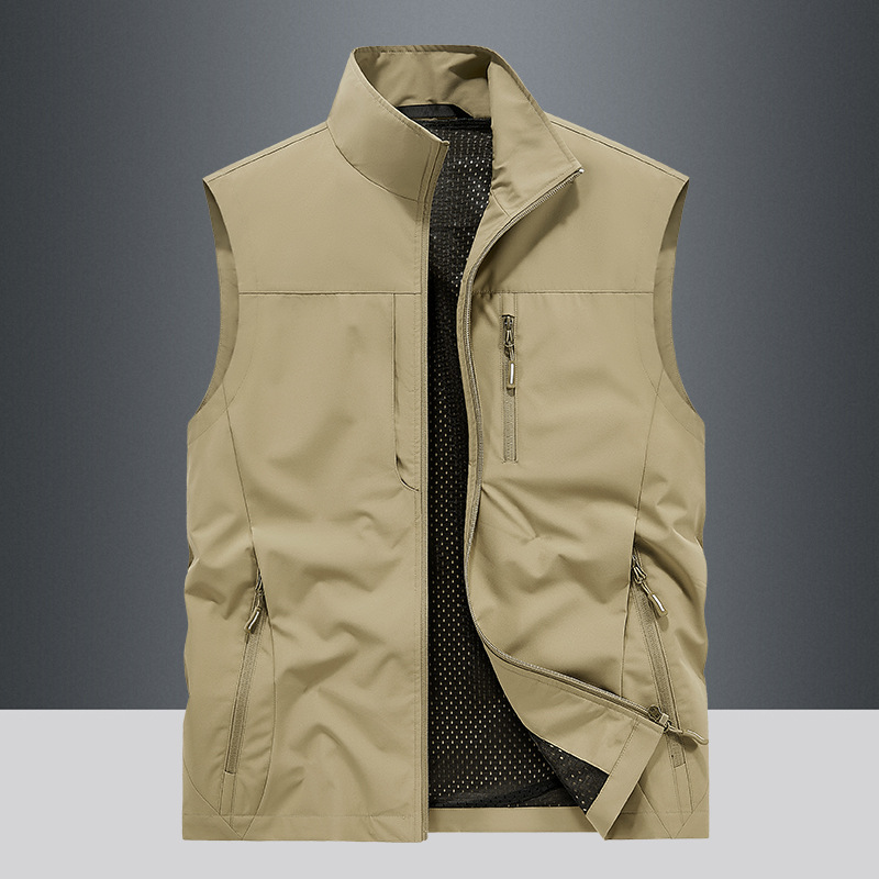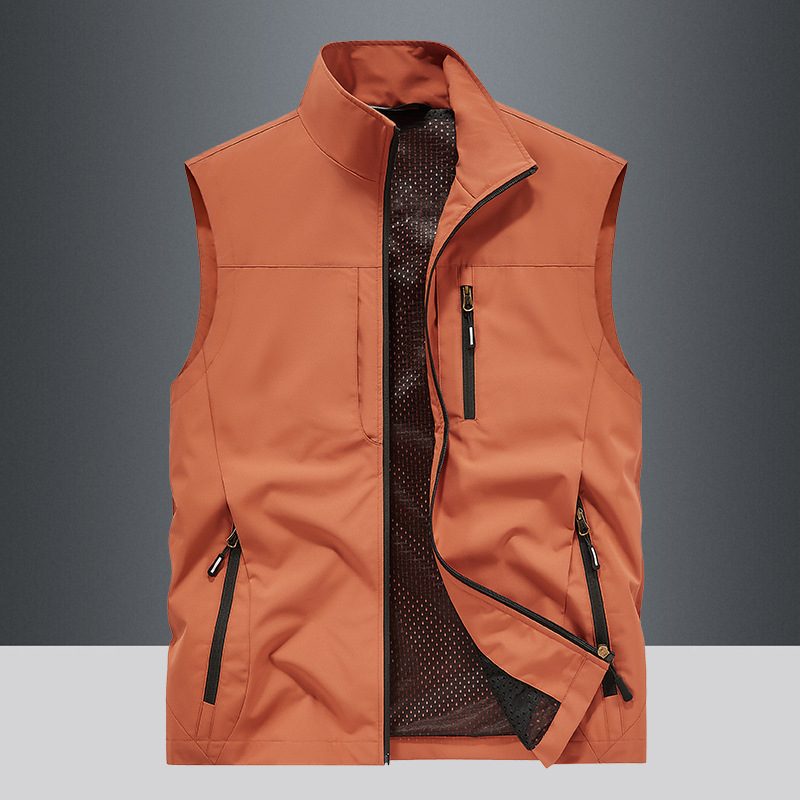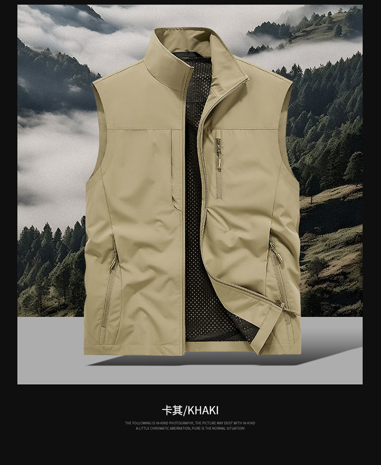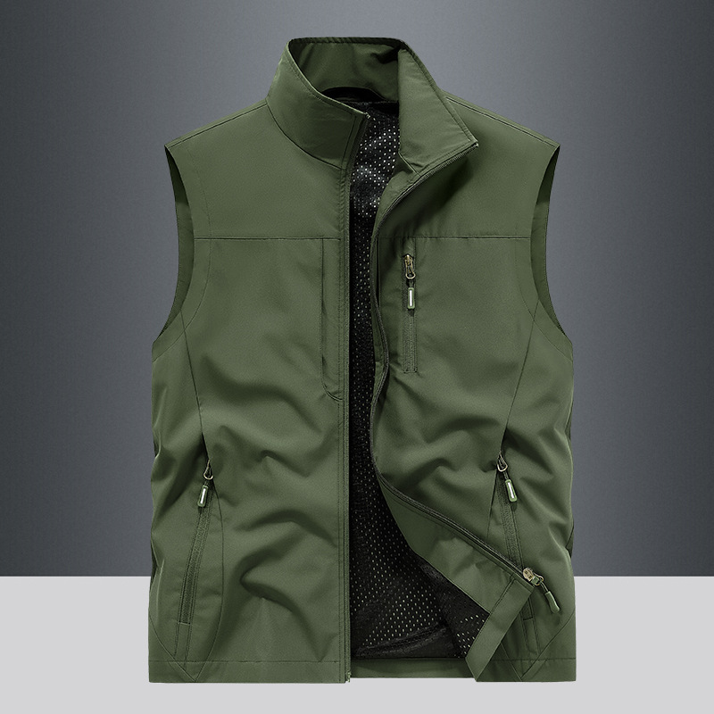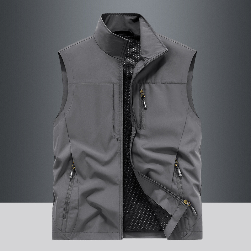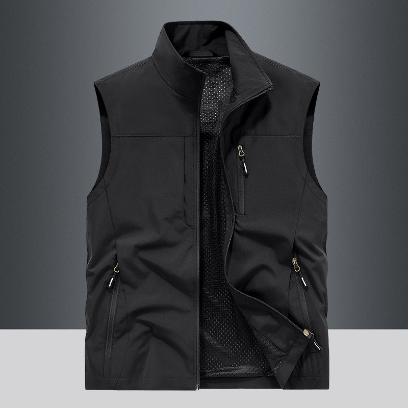 봄과 가을 남자 조끼 야외 레저 스포츠 여행 조끼 수직 칼라 허리 코트 느슨한 플러스 사이즈 조끼 남자