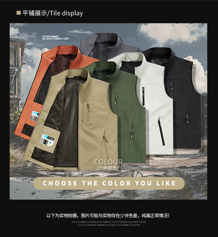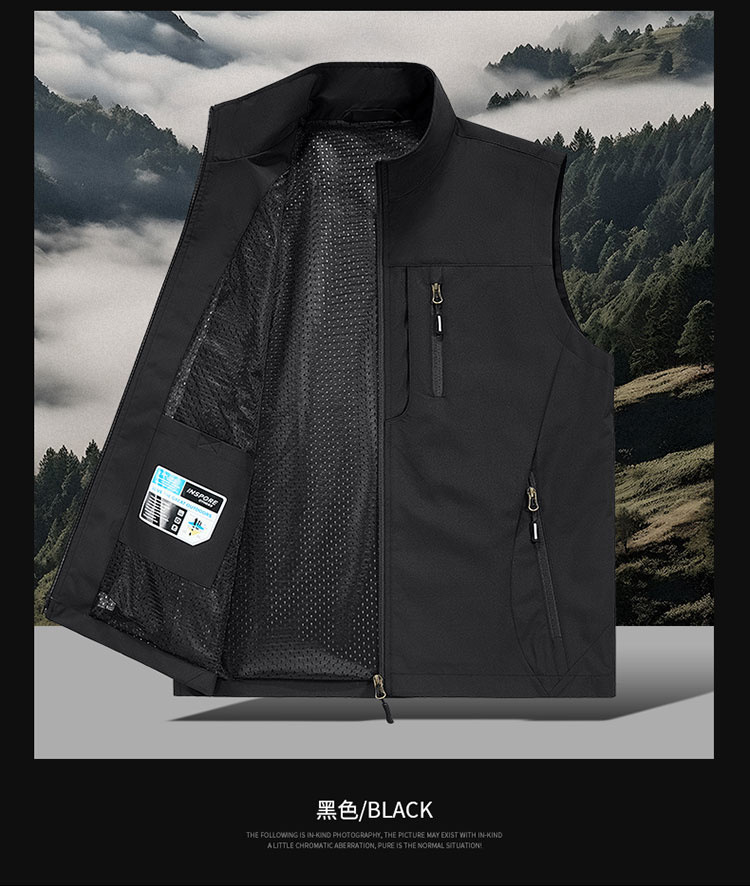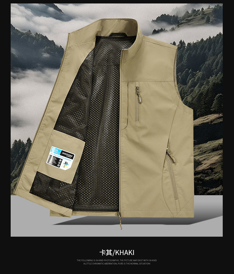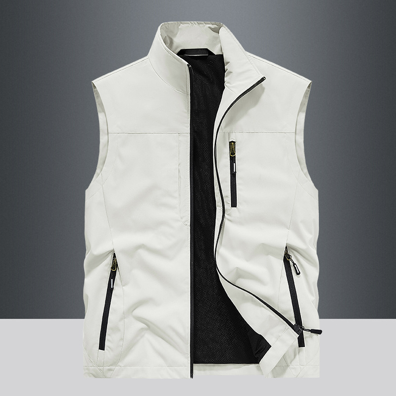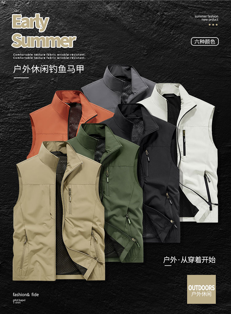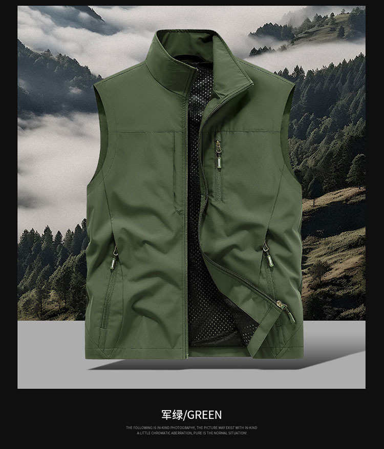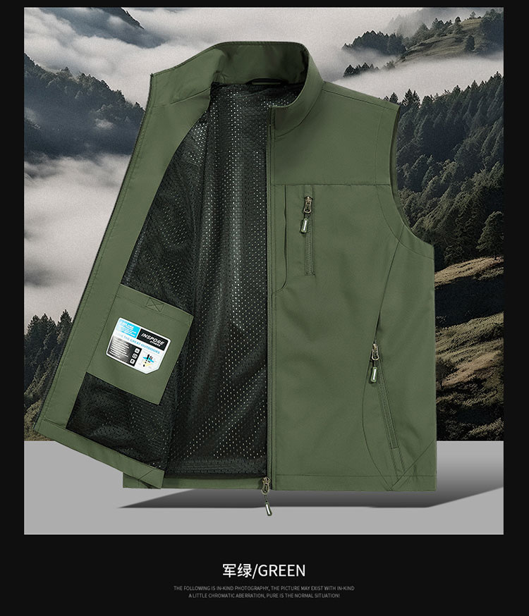 봄과 가을 남자 조끼 야외 레저 스포츠 여행 조끼 수직 칼라 허리 코트 느슨한 플러스 사이즈 조끼 남자