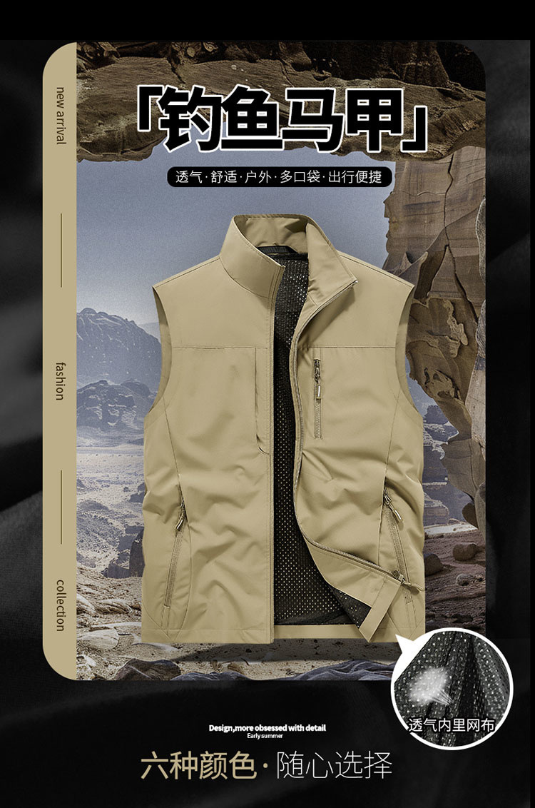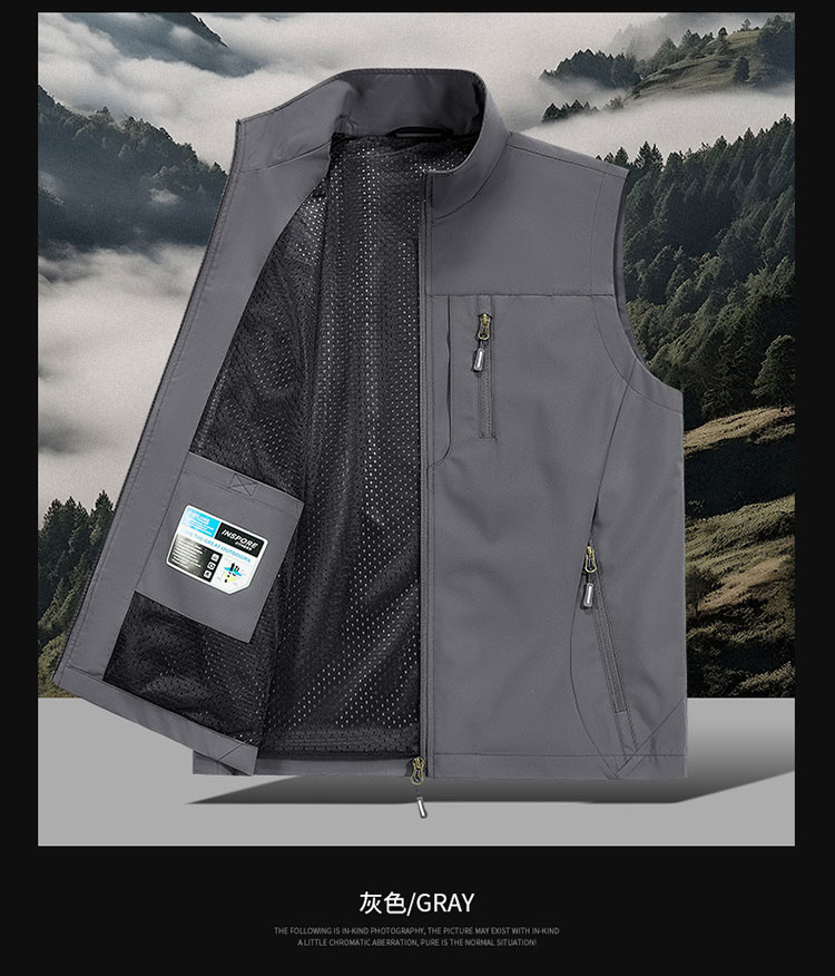 봄과 가을 남자 조끼 야외 레저 스포츠 여행 조끼 수직 칼라 허리 코트 느슨한 플러스 사이즈 조끼 남자스토어 가기