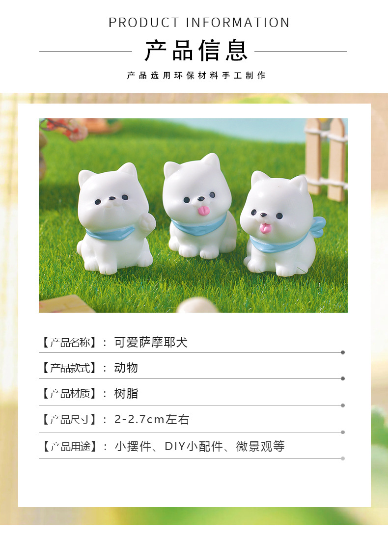 마이크로 풍경 창조적 인 작은 장식품 귀여운 Samoyed 강아지 인형 diy 장식 액세서리 수지 사랑스러운 장식품