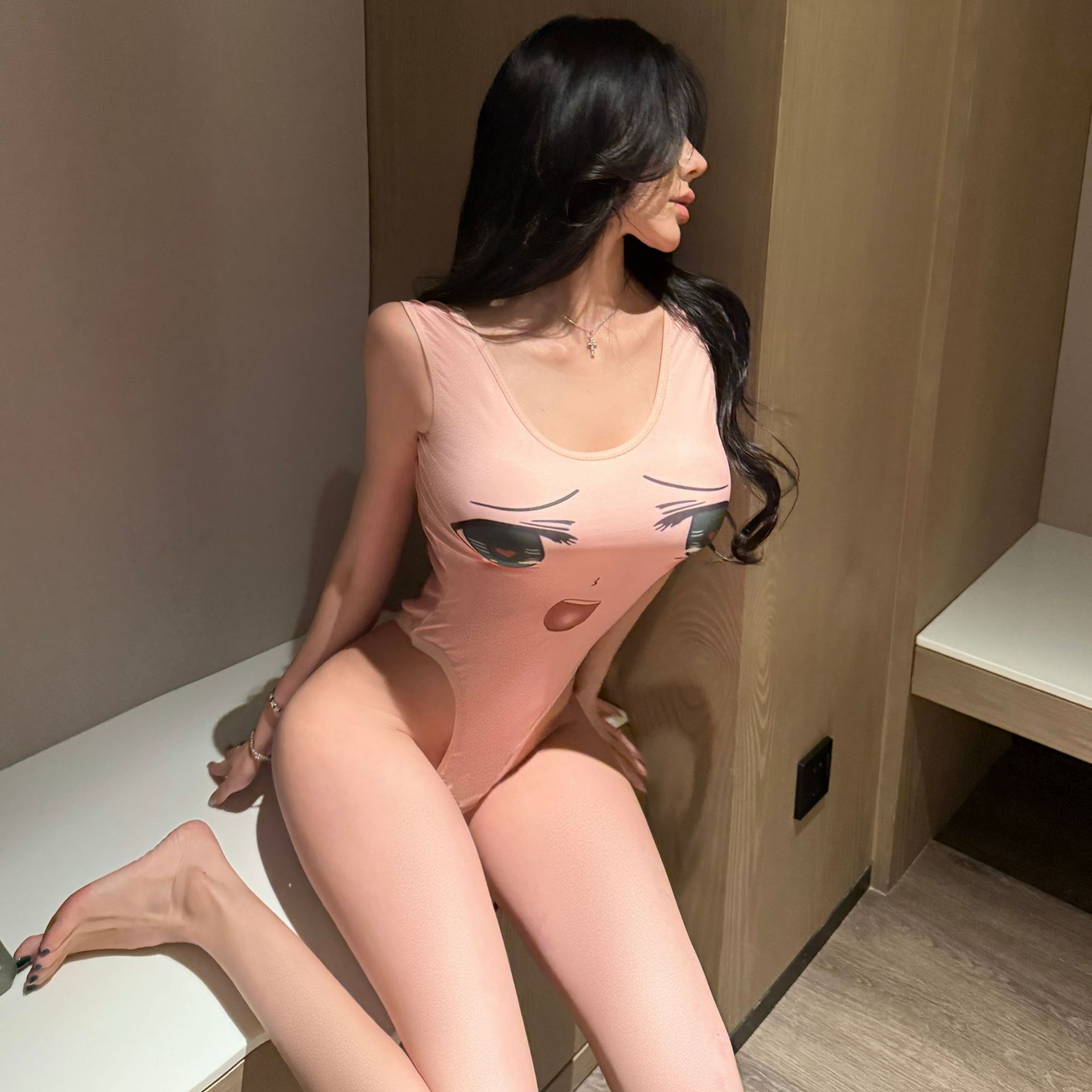 섹시한 속옷 표현 얼굴 보조 위안 블랙 얀 올인원 세트 오픈 크로 치 무료 만화 수영복 죽은 물 여성 1091스토어 가기