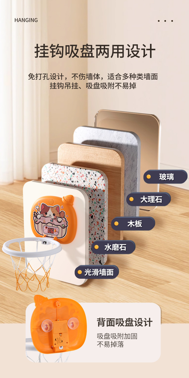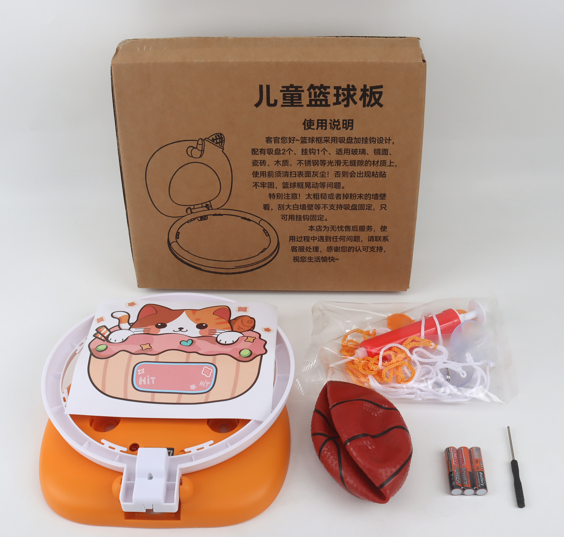 • 대형 [득점모델] 귀여운 고양이 (농구공 1개, 펌프 1개, 흡착판 2개, 후크 1개, 배터리 3개)
