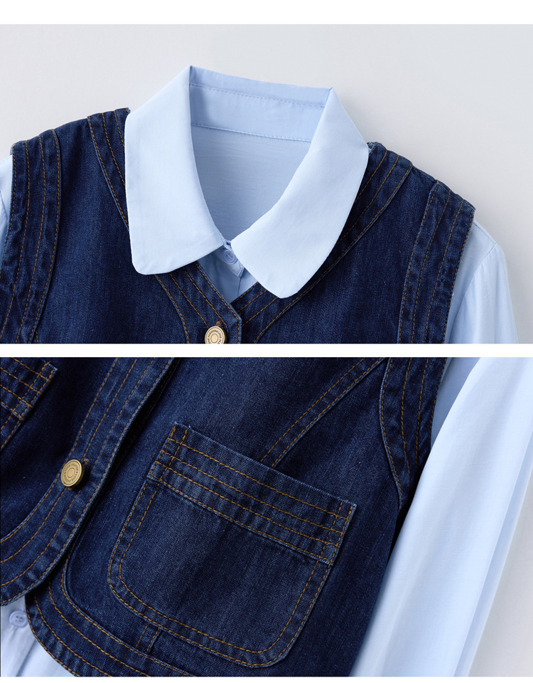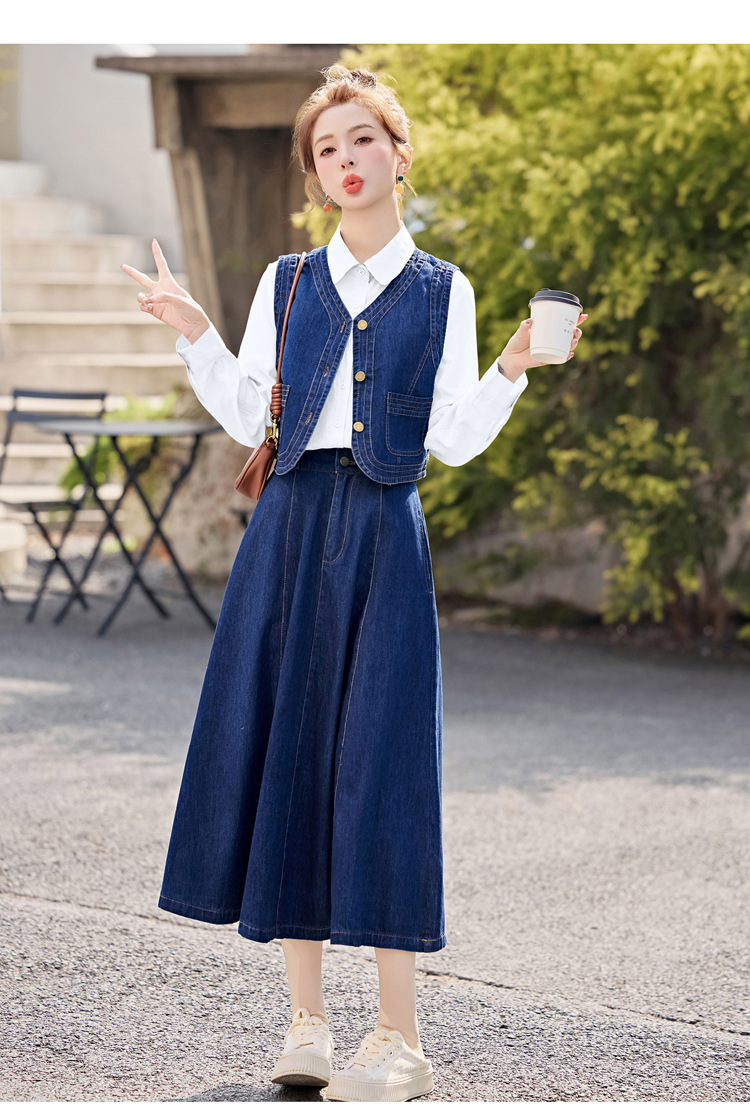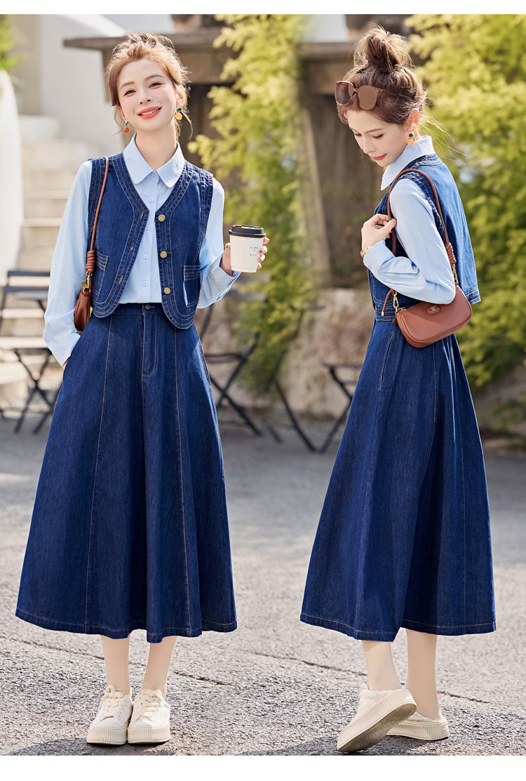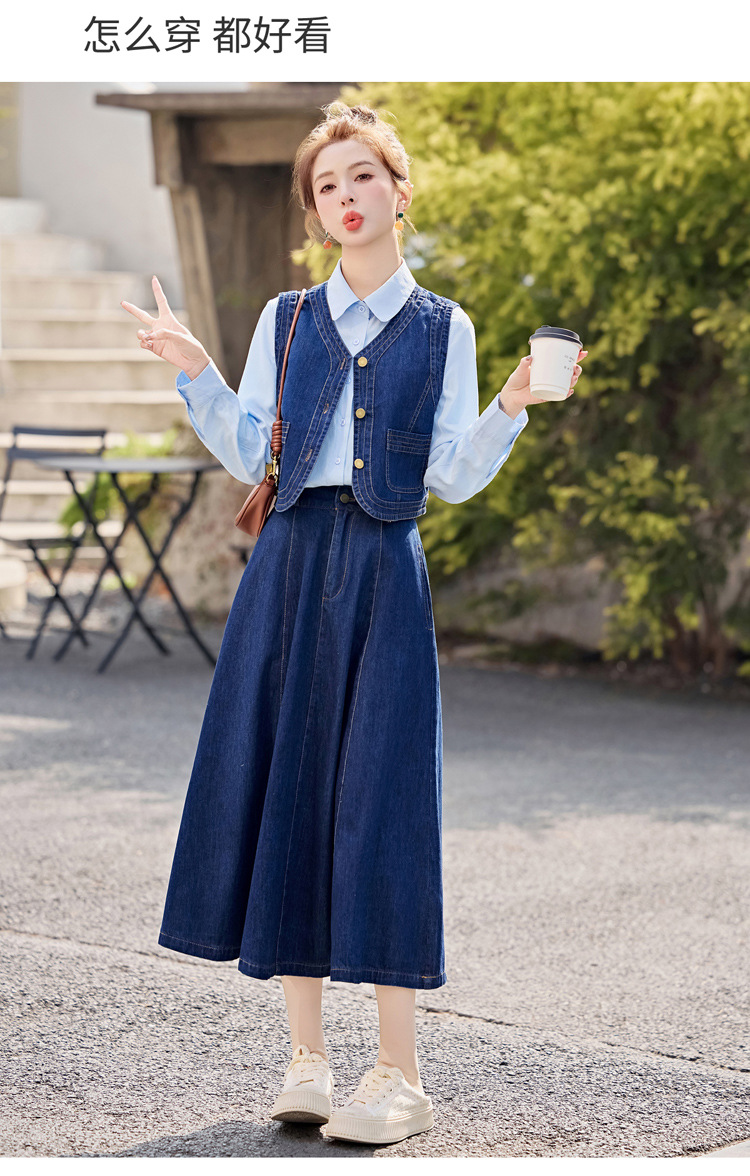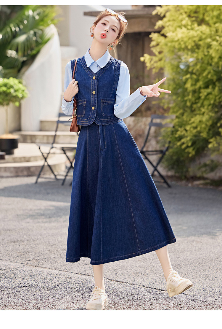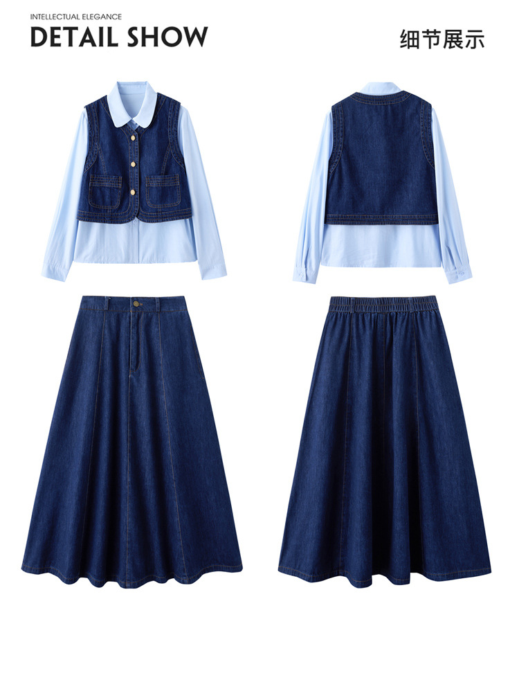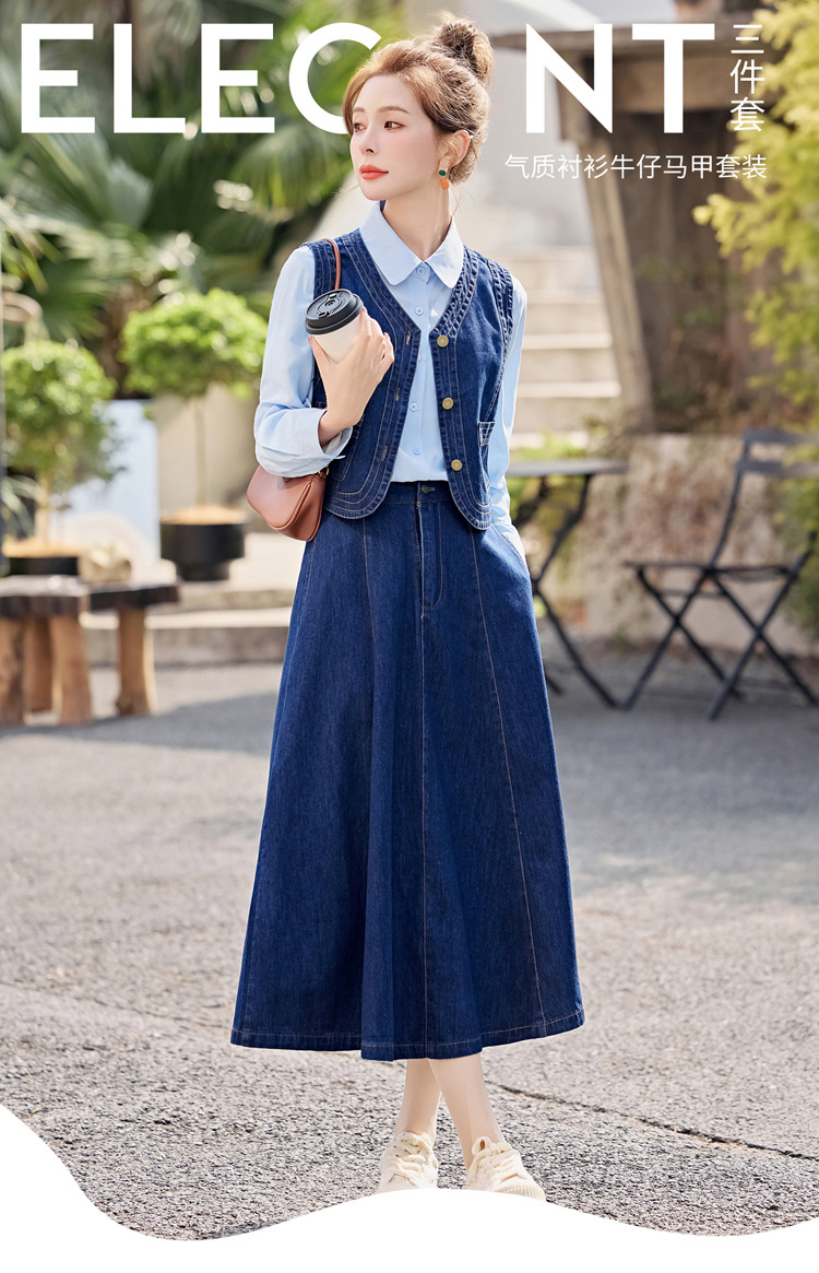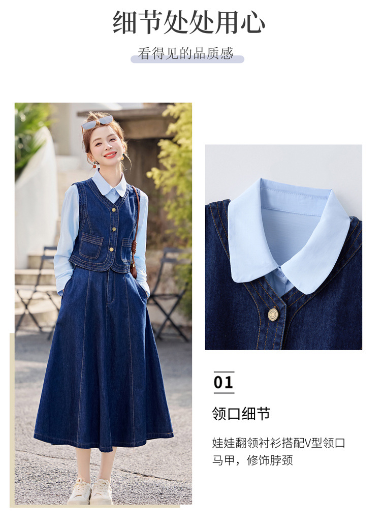 데님 원피스 여성의 봄과 가을 2025 새로운 학술 스타일 패션 셔츠 조끼 3 조각 세트 YF2552스토어 가기