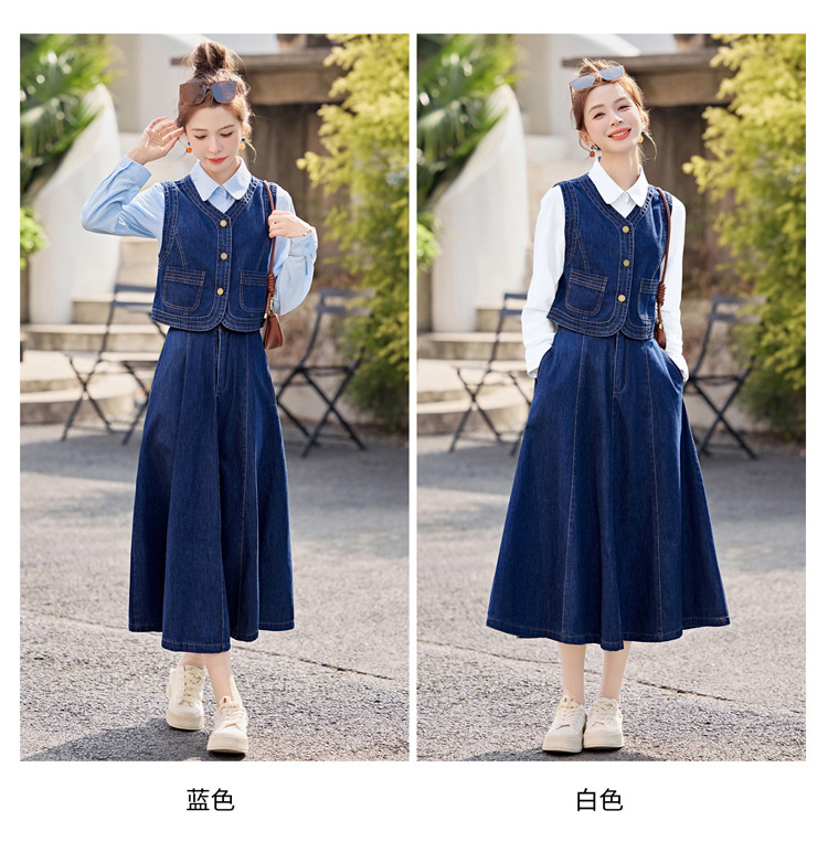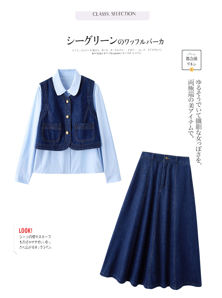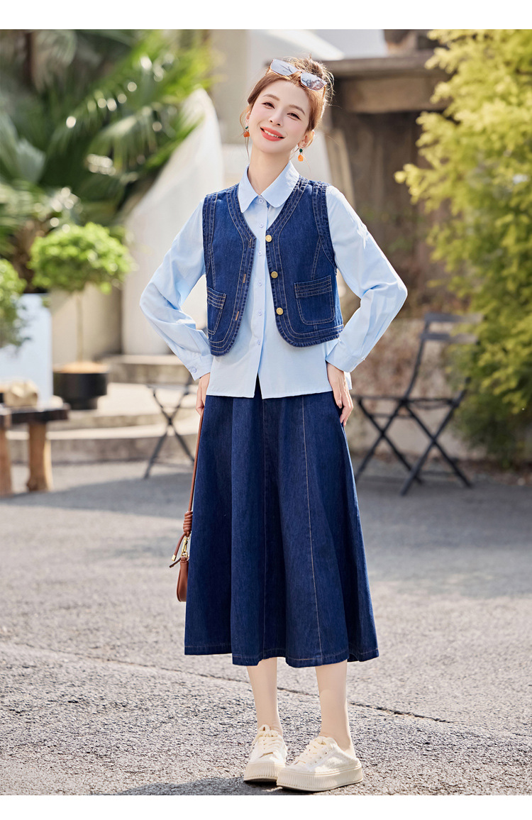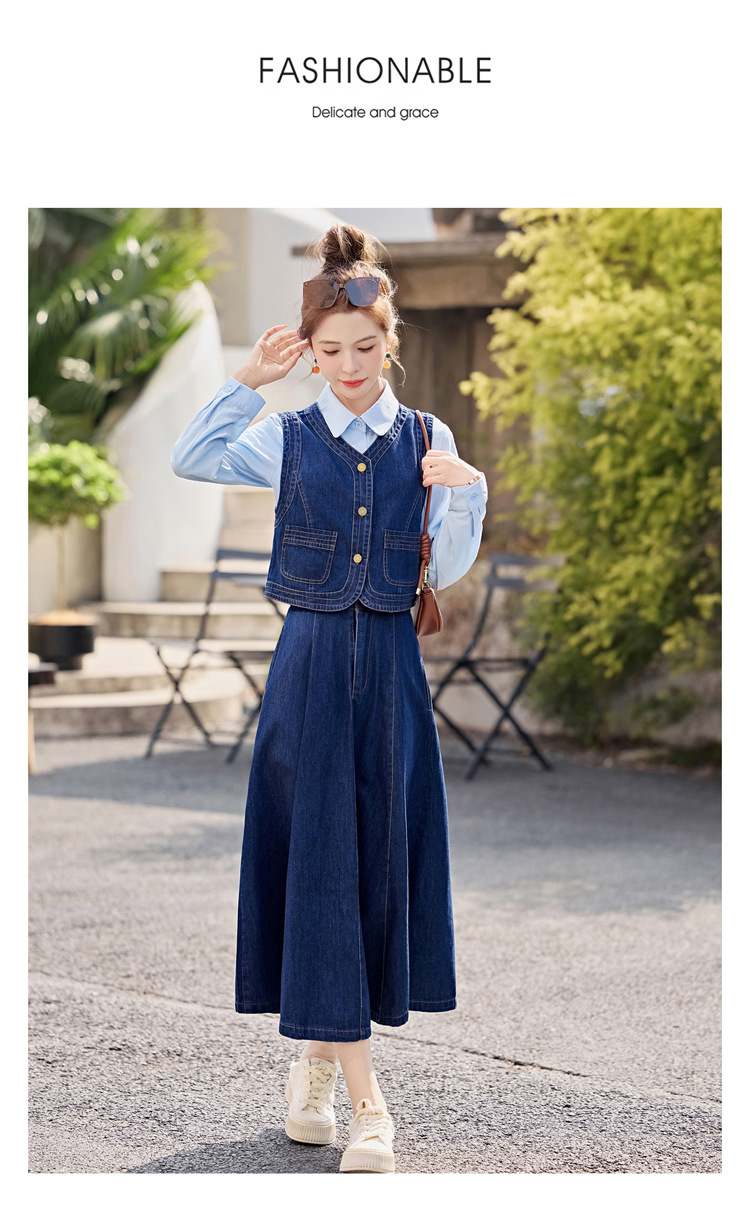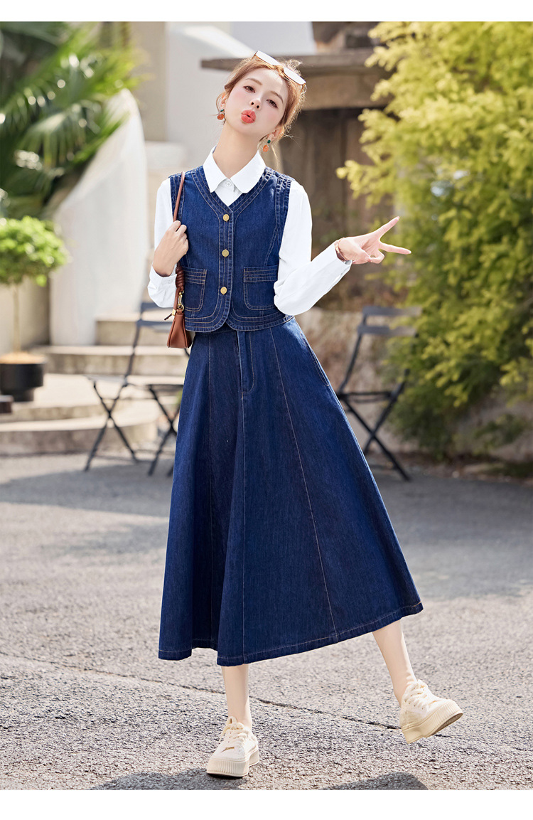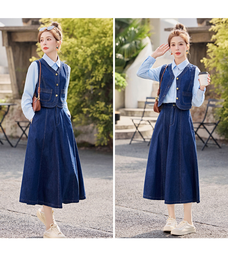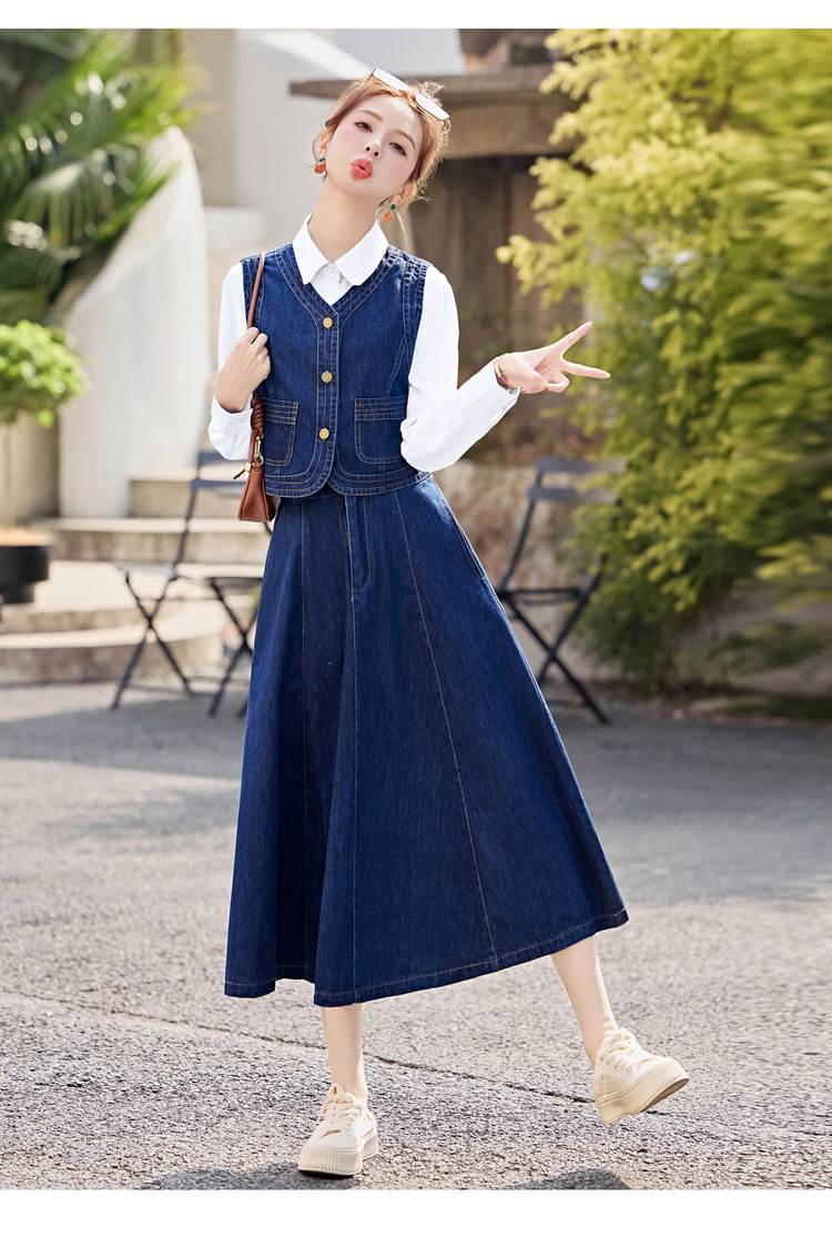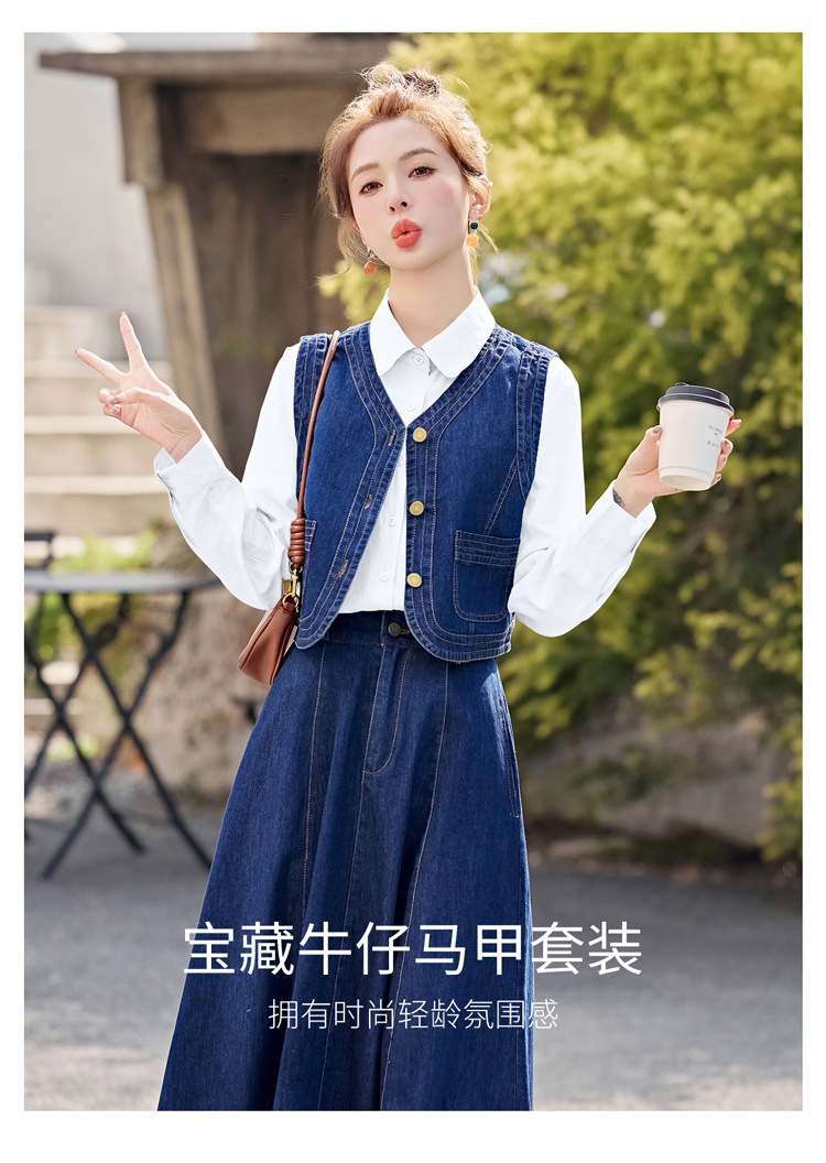 데님 원피스 여성의 봄과 가을 2025 새로운 학술 스타일 패션 셔츠 조끼 3 조각 세트 YF2552스토어 가기