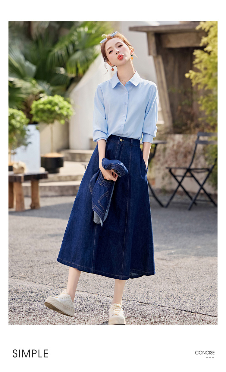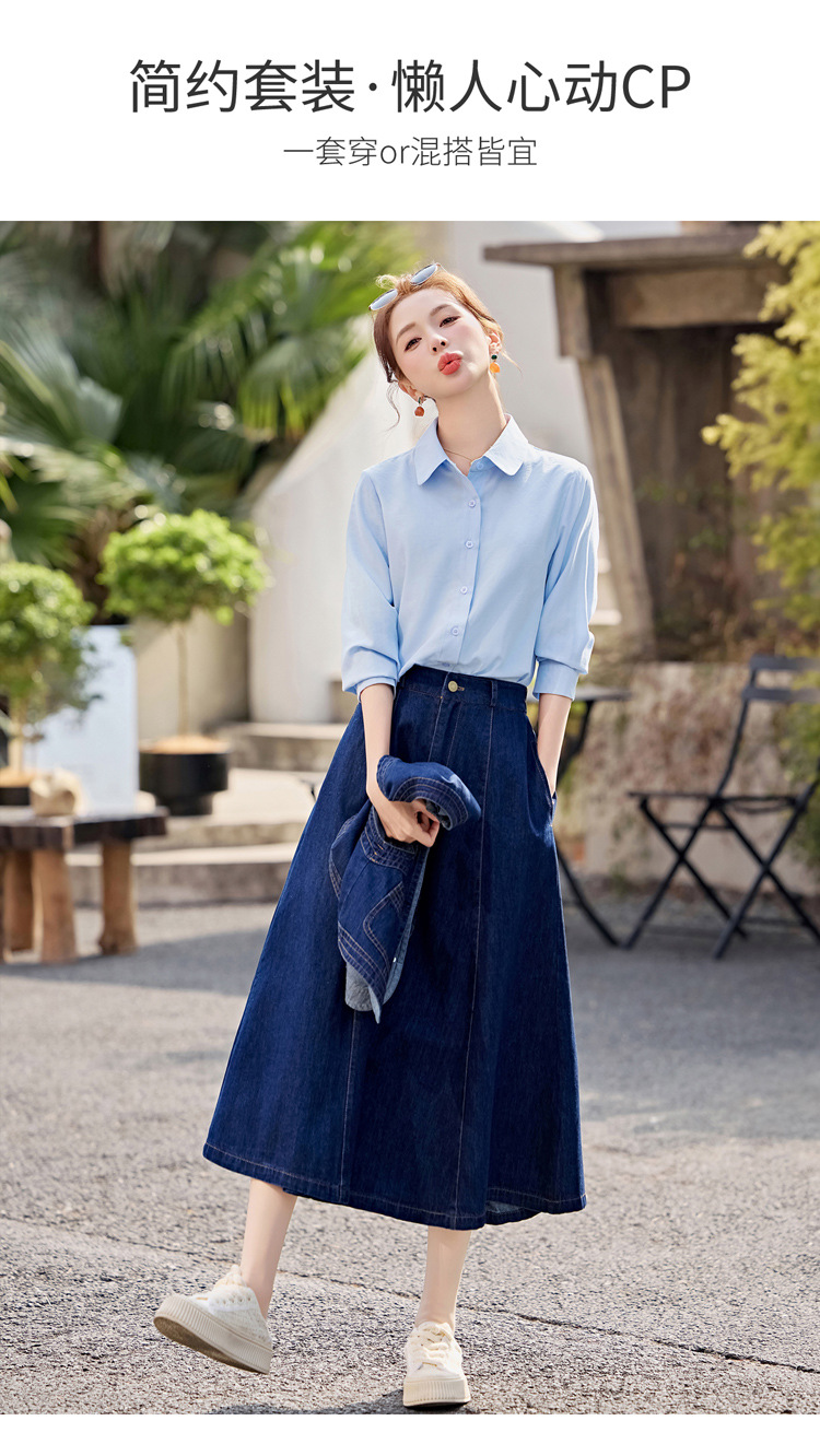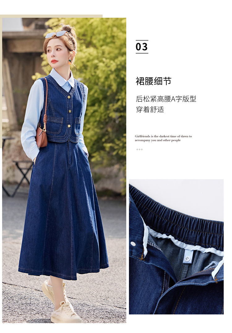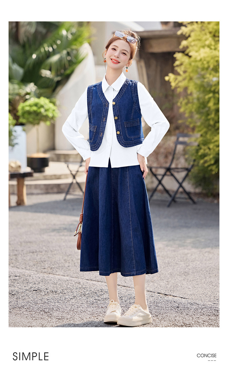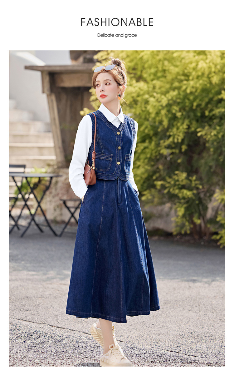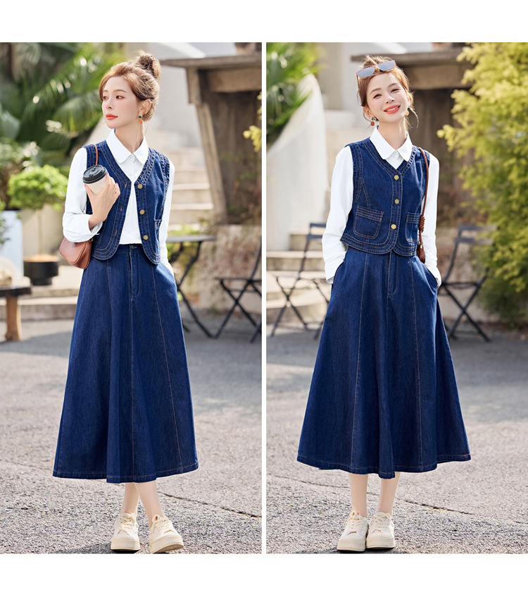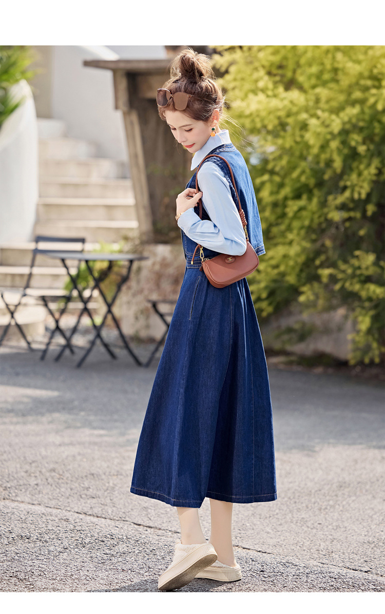 데님 원피스 여성의 봄과 가을 2025 새로운 학술 스타일 패션 셔츠 조끼 3 조각 세트 YF2552스토어 가기