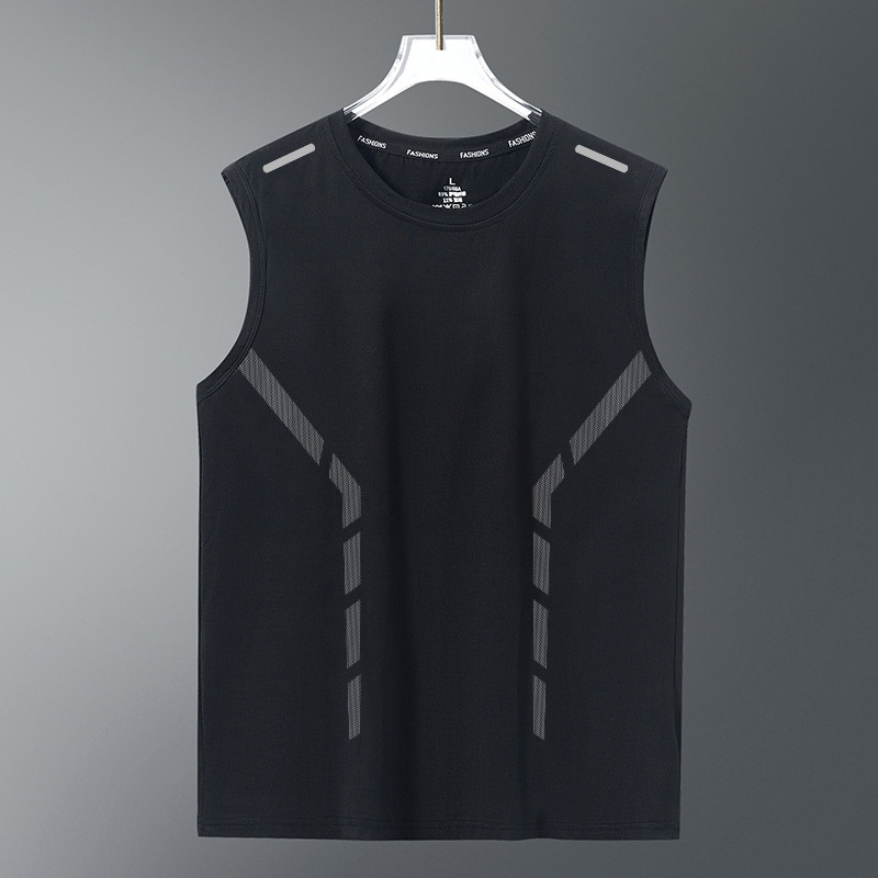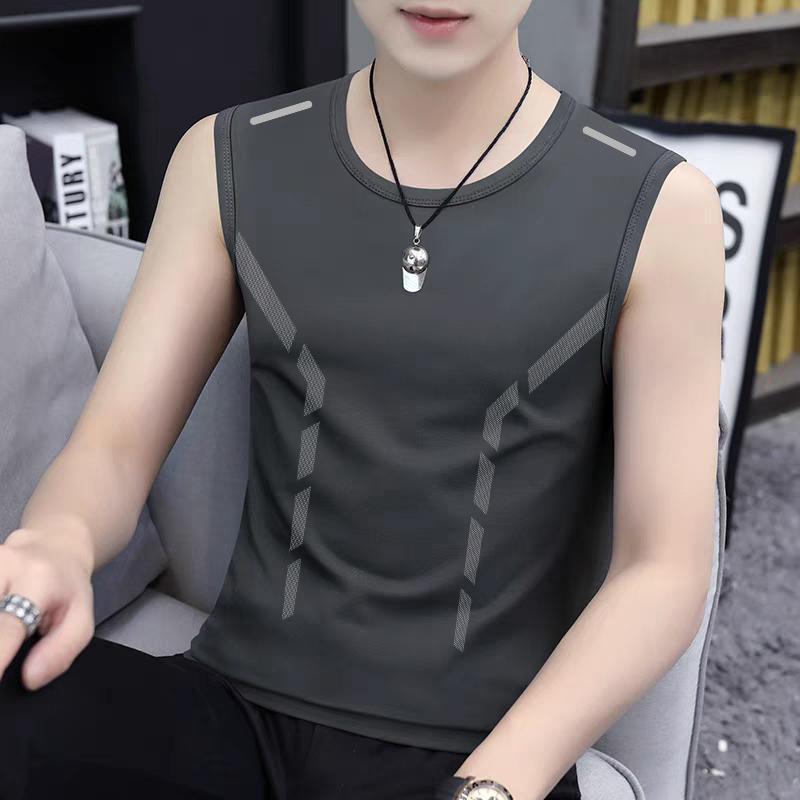 블루 라운드 넥 민소매 조끼 어깨 아이스 실크 여름 러닝 어퍼 바디 아이스 스포츠 조끼 남자 민소매 티셔츠스토어 가기