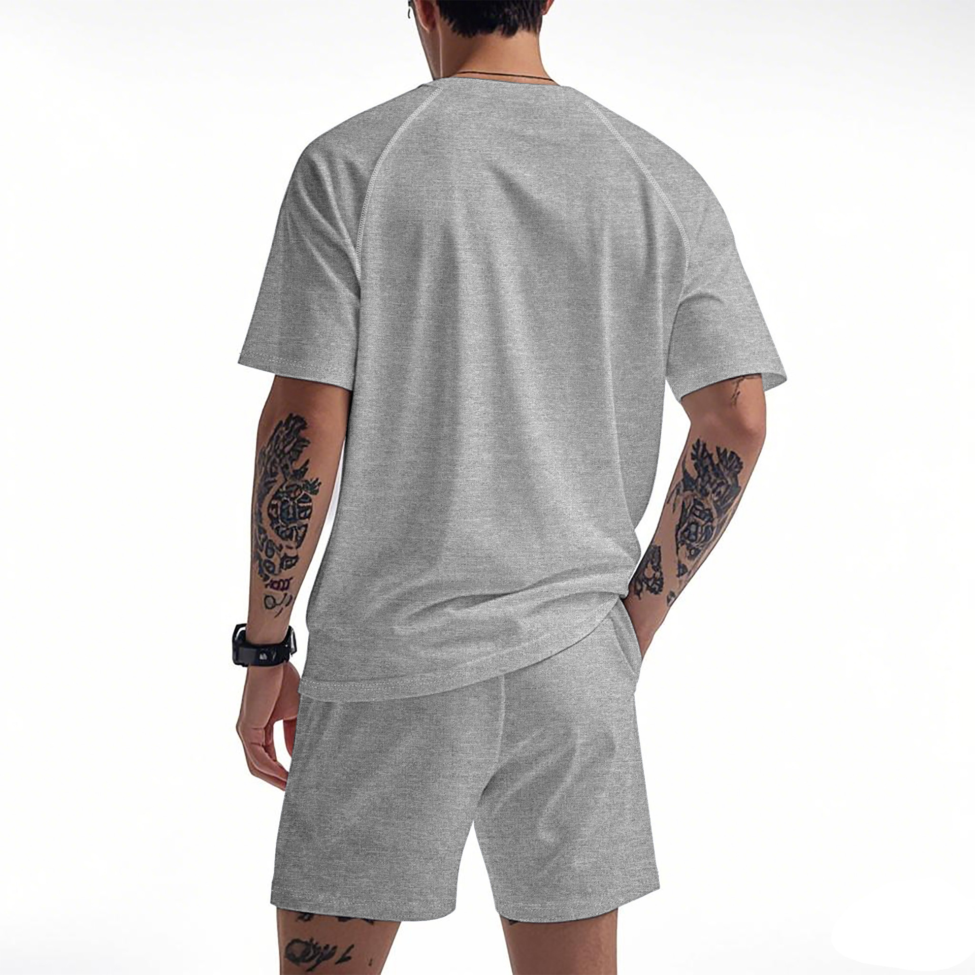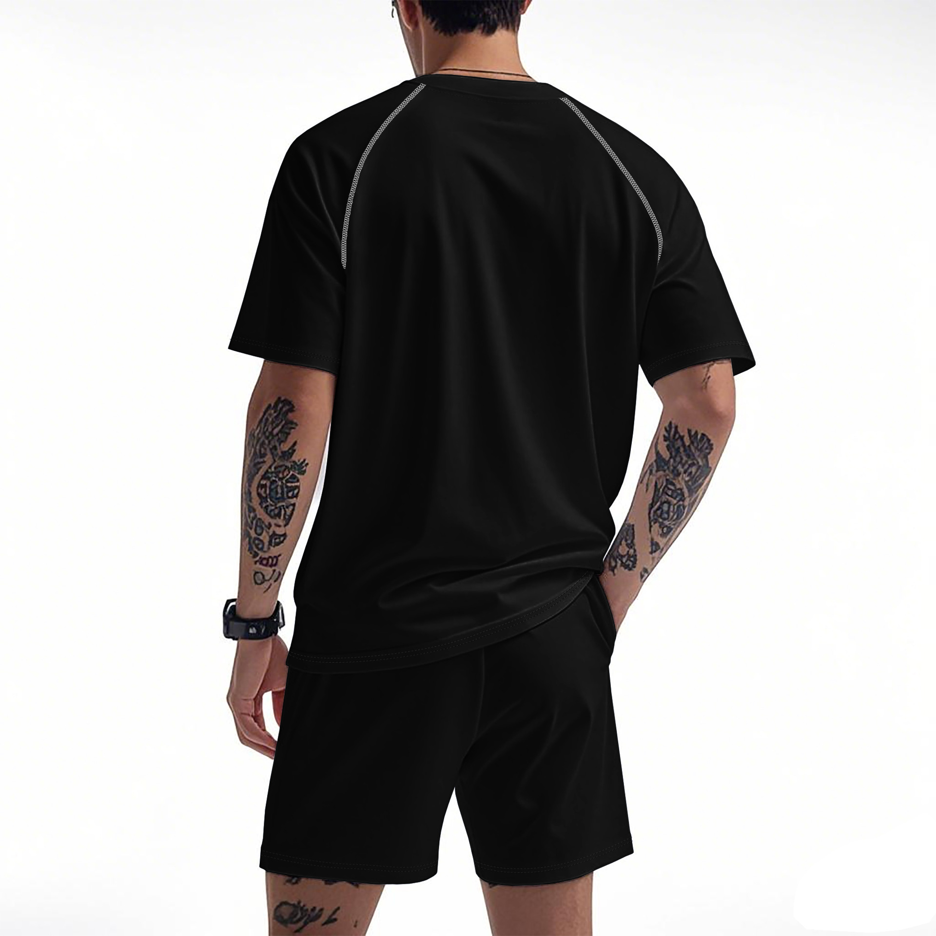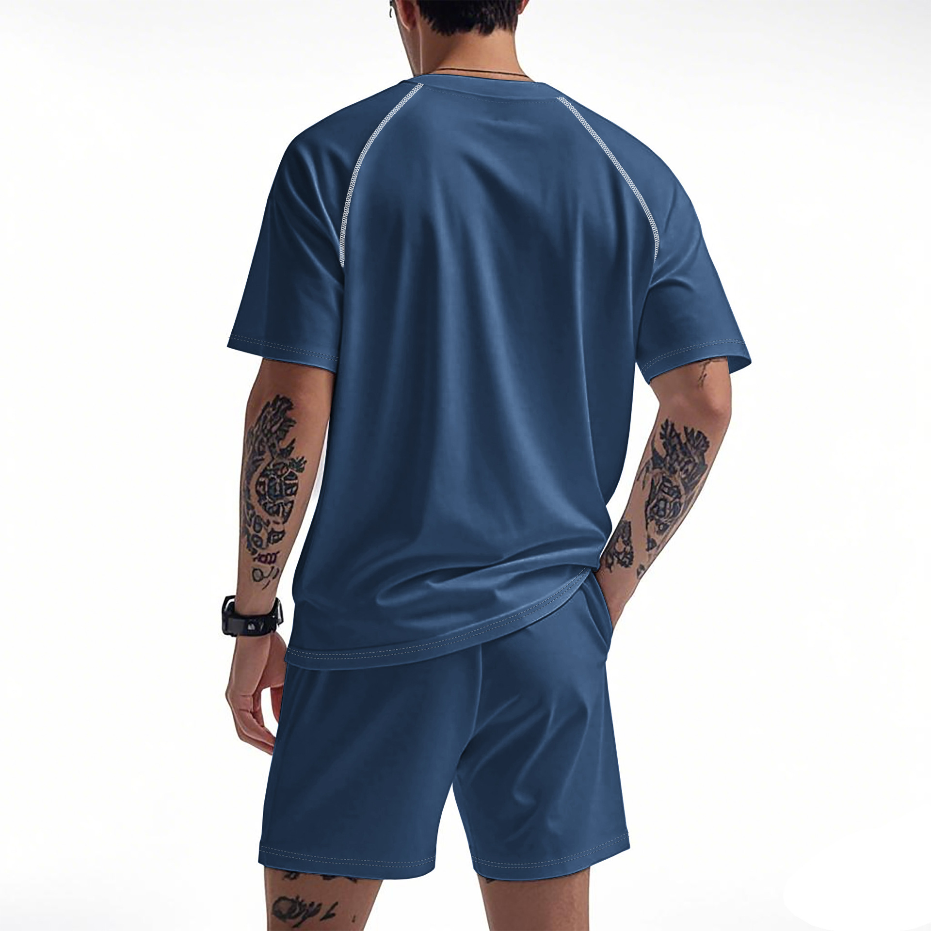 국경 간 남자 여름 남자 운동복 세트 캐주얼 스포츠 간단한 빠른 건조 어깨 반바지 2 피스 세트