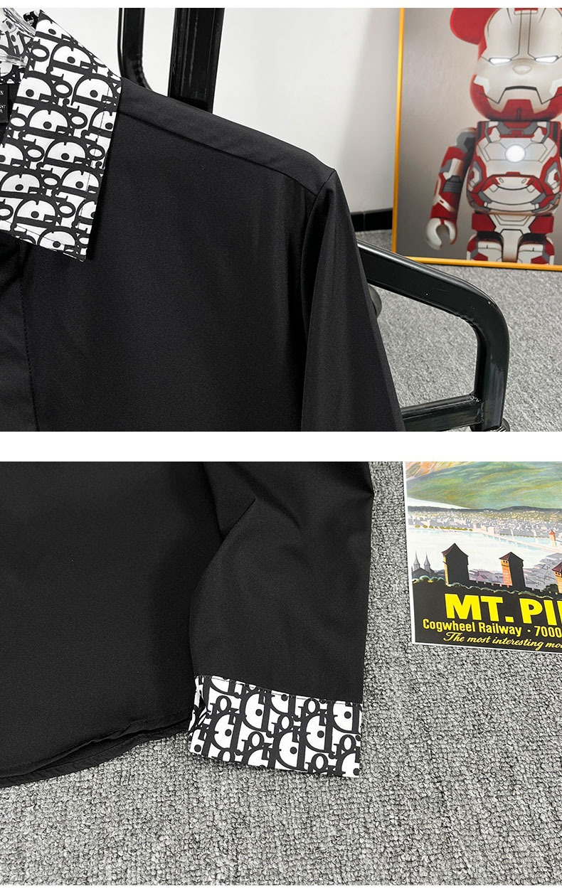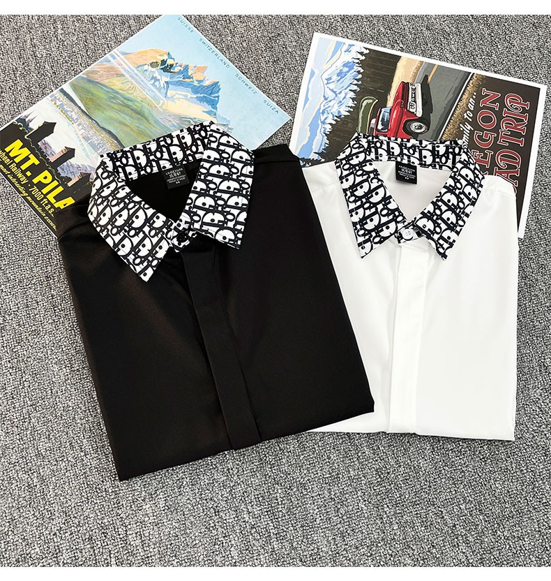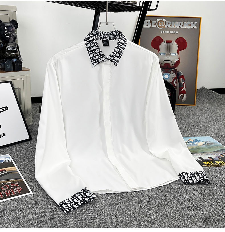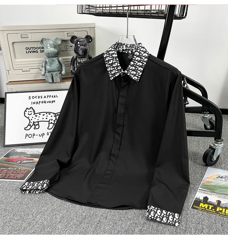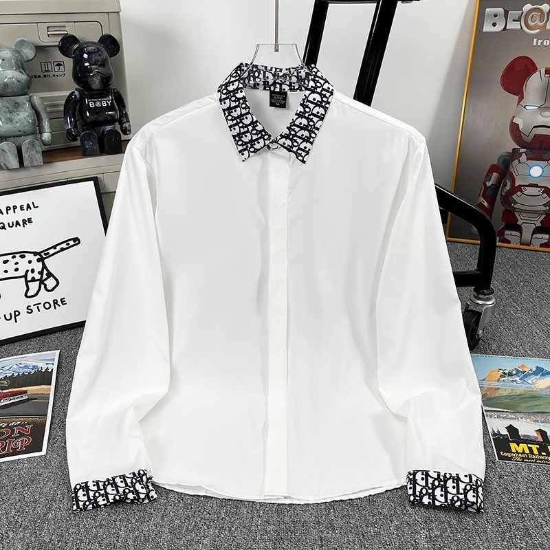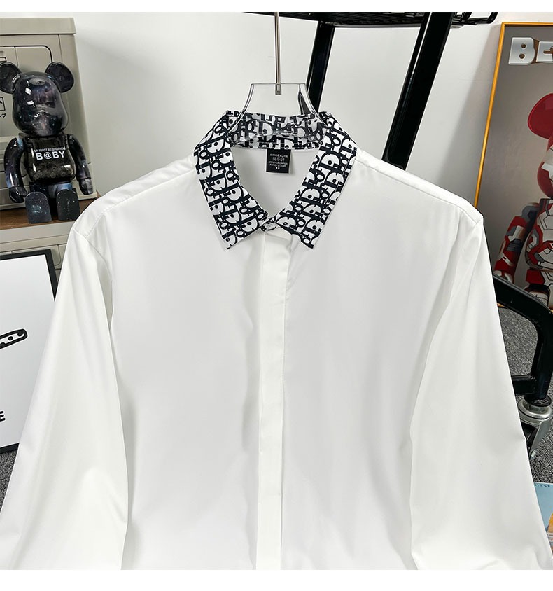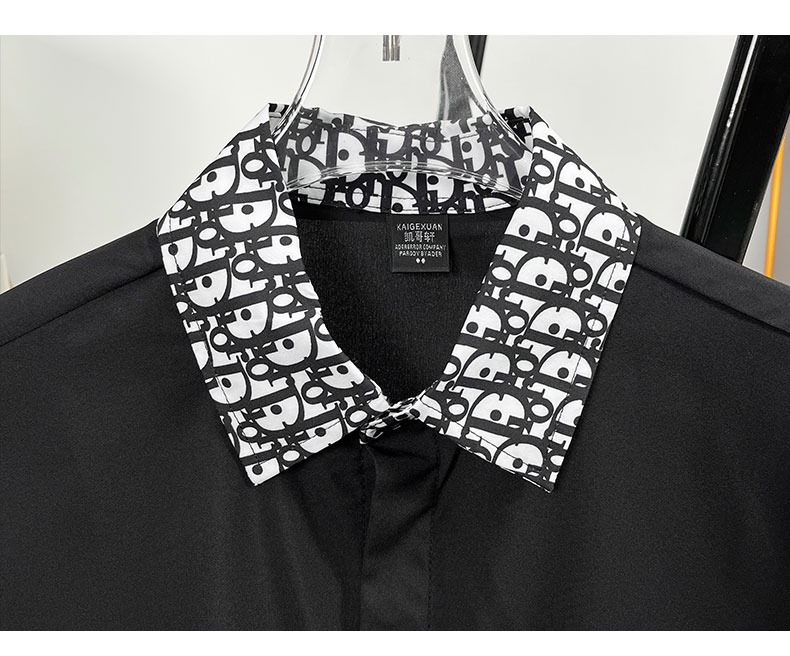 유럽 가벼운 럭셔리 남성 맞춤형 라펠 레터 자카드 슬림 얇은 셔츠 패션 캐주얼 다용도 비즈니스 탑스토어 가기