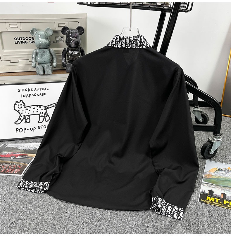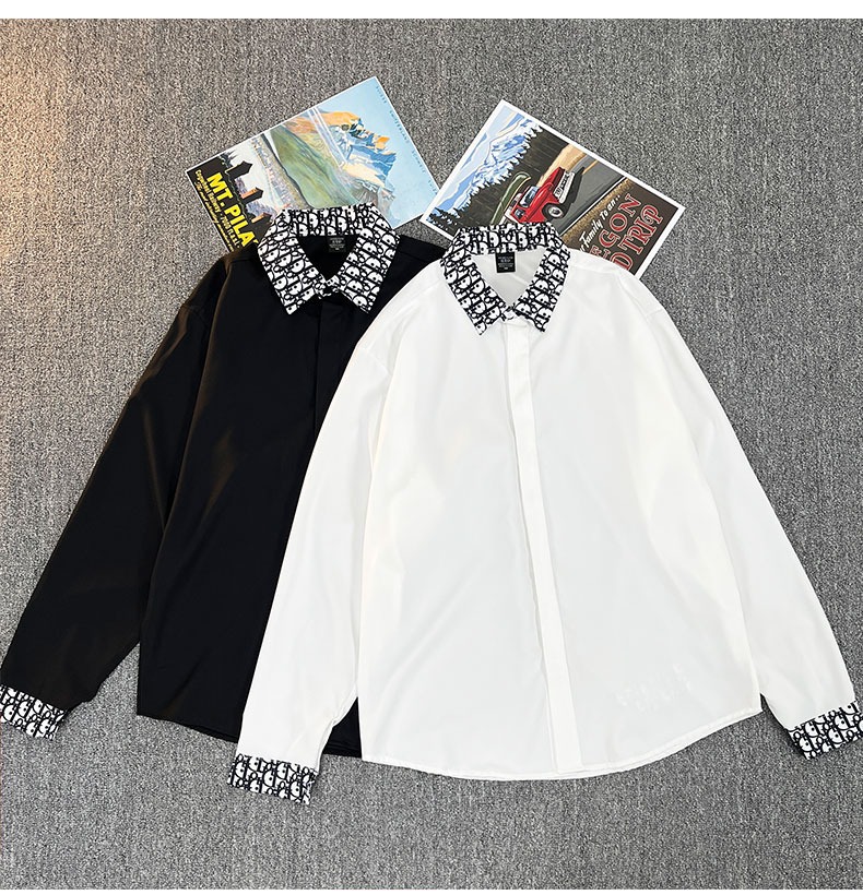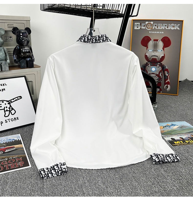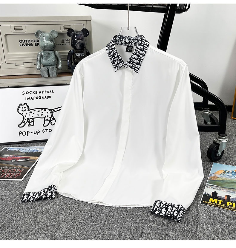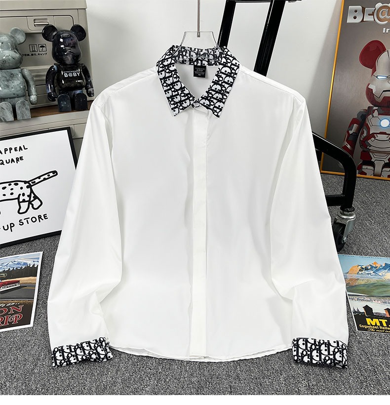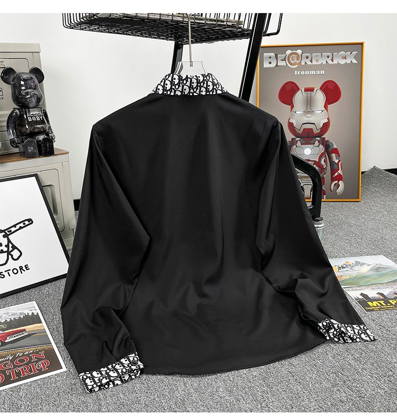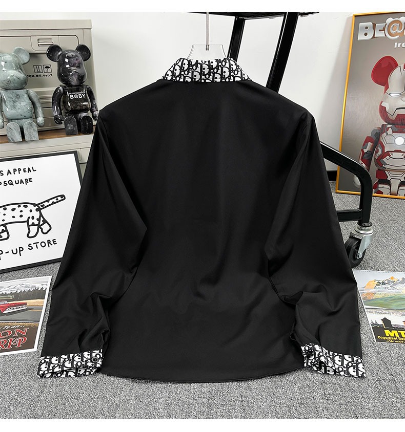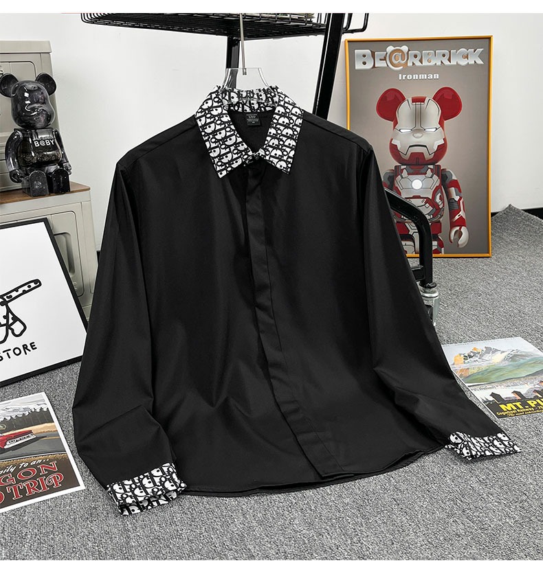 유럽 가벼운 럭셔리 남성 맞춤형 라펠 레터 자카드 슬림 얇은 셔츠 패션 캐주얼 다용도 비즈니스 탑스토어 가기