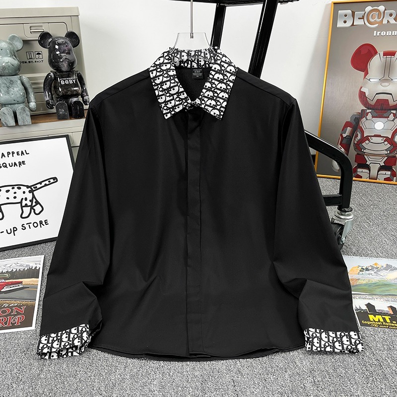 유럽 가벼운 럭셔리 남성 맞춤형 라펠 레터 자카드 슬림 얇은 셔츠 패션 캐주얼 다용도 비즈니스 탑