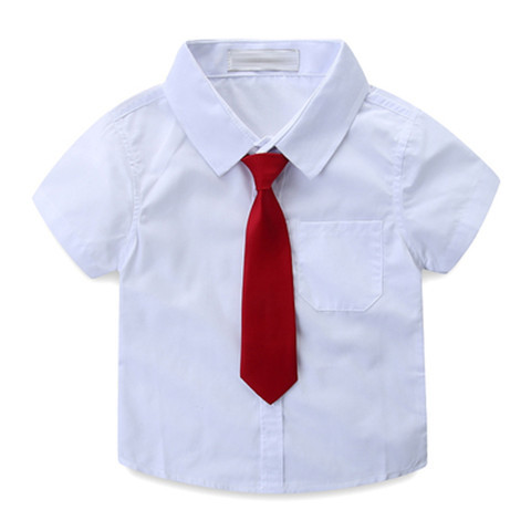• 뾰족한 칼라 반소매 + 빨간색 넥타이