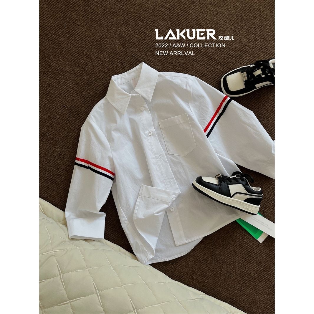 올매치 어린이 셔츠 여아 흰색 긴팔 흰색 셔츠 라운드 넥 학교 유니폼 중 · 대학교용 및 초등학교 어린이 정원 아기 옷