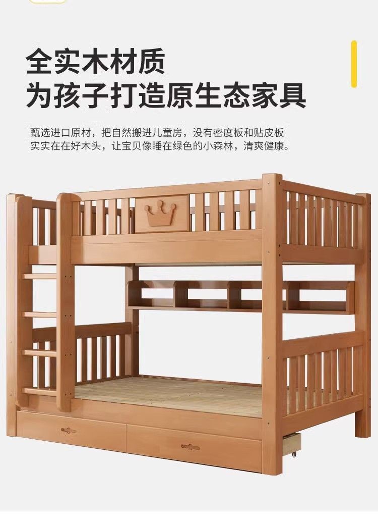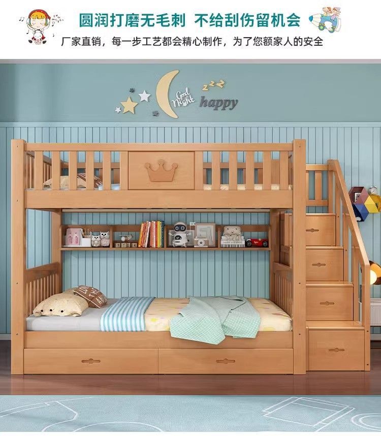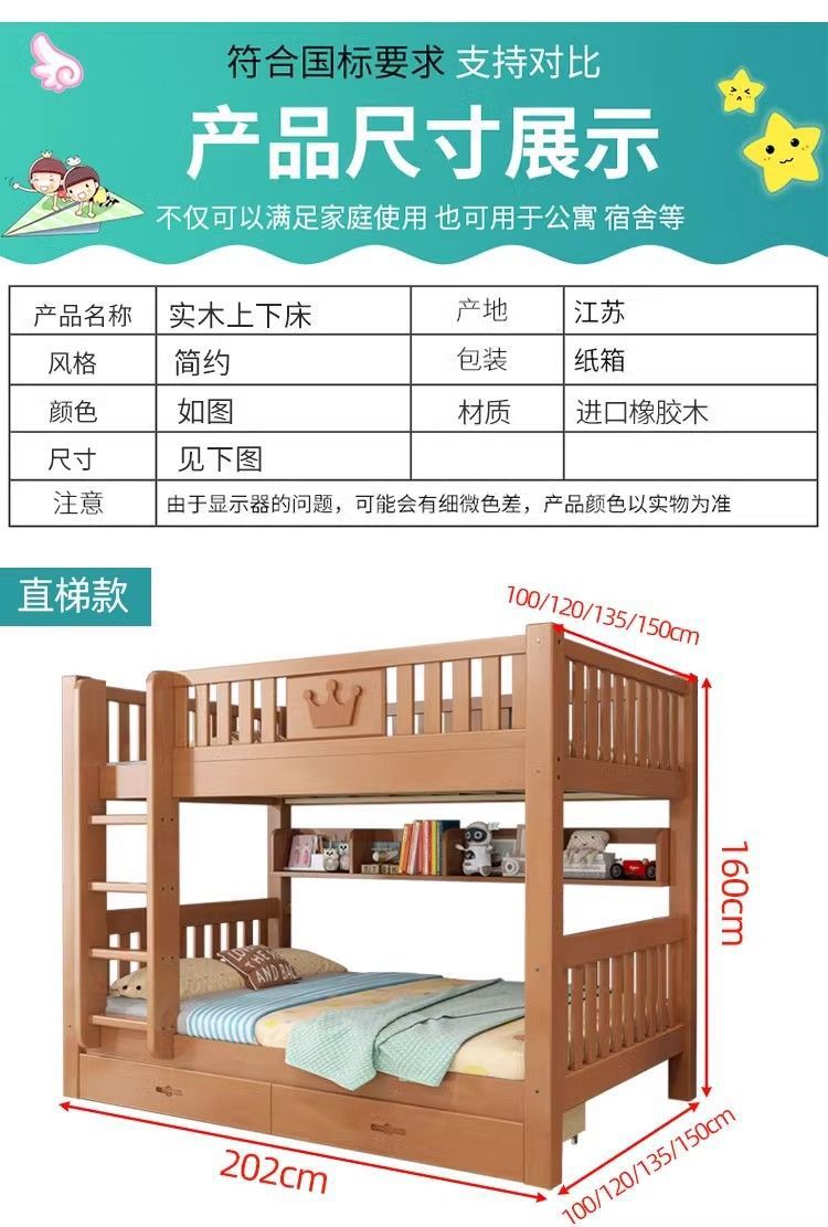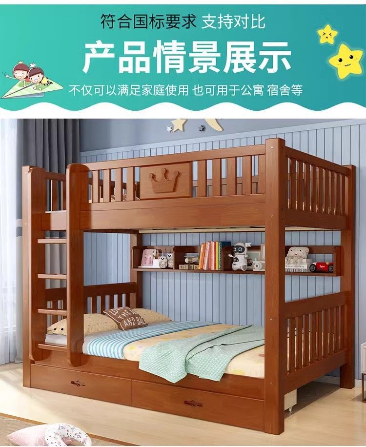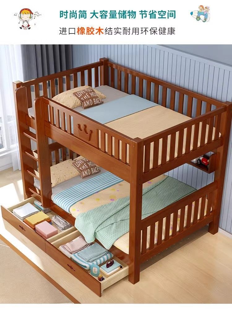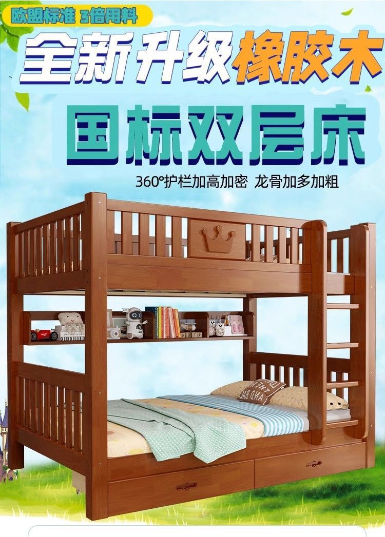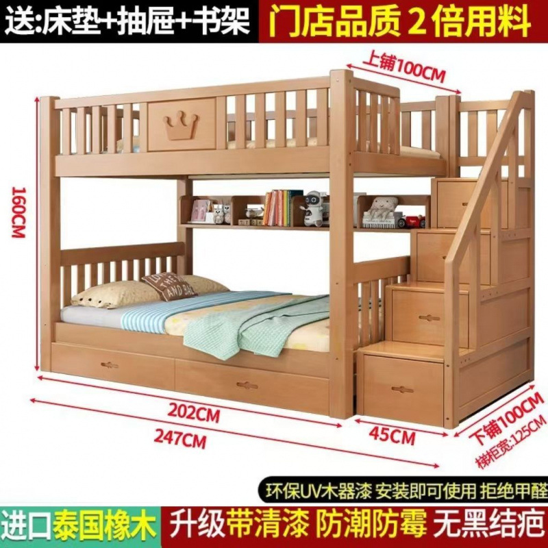 어린이 단단한 나무 침대 이층 침대 기숙사 침대 2 층 고무 나무 침대 작은 아파트 높고 낮은 가구스토어 가기