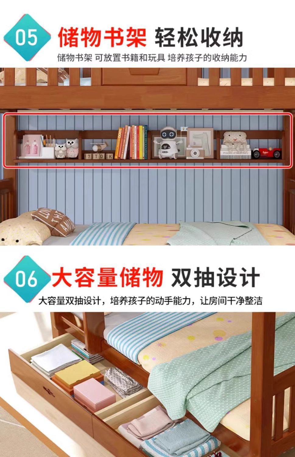 • [앰버 레드 사다리 캐비닛 모델] 친환경 매트리스 + 서랍 + 책장 + 설치 포함
