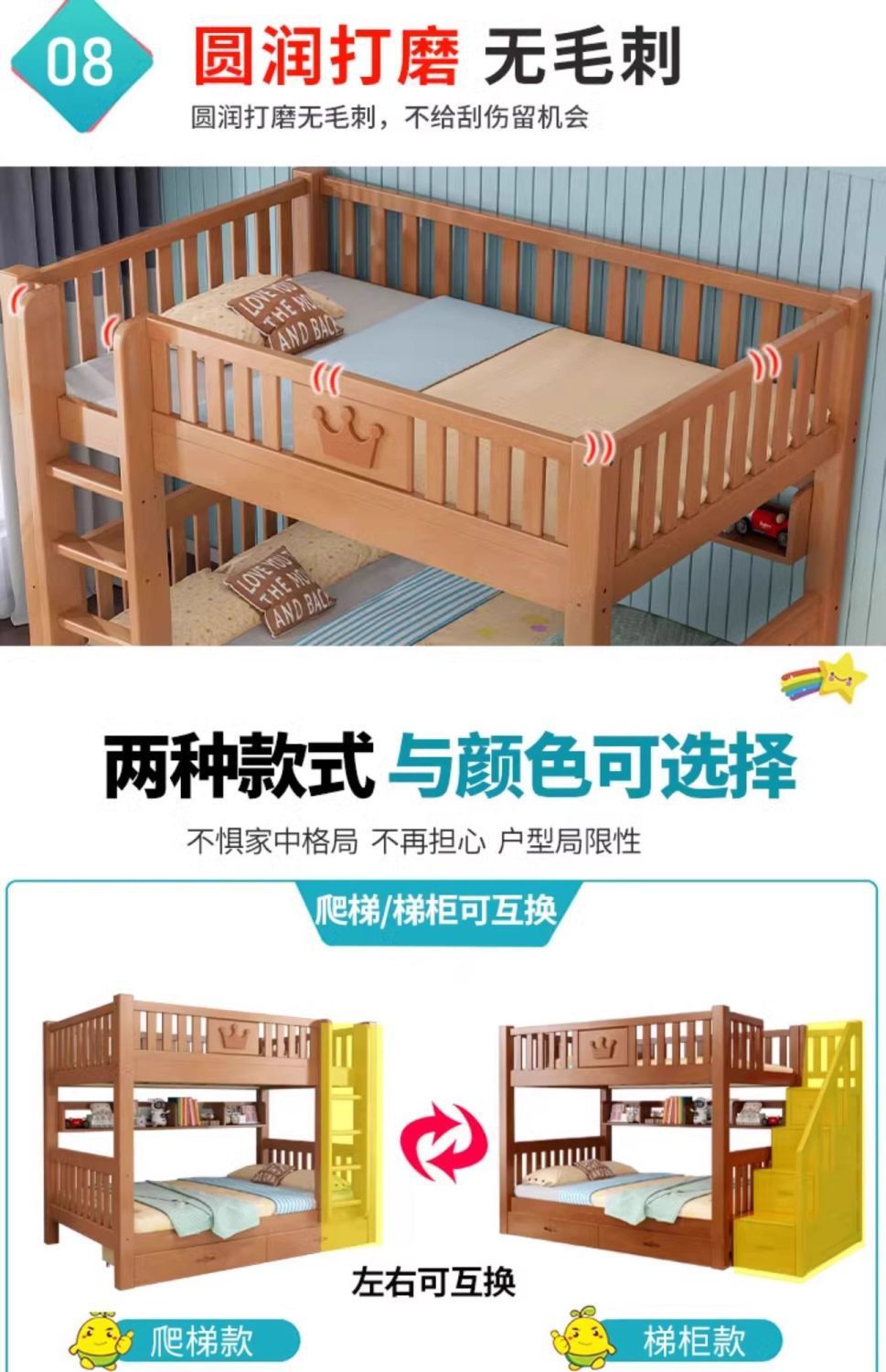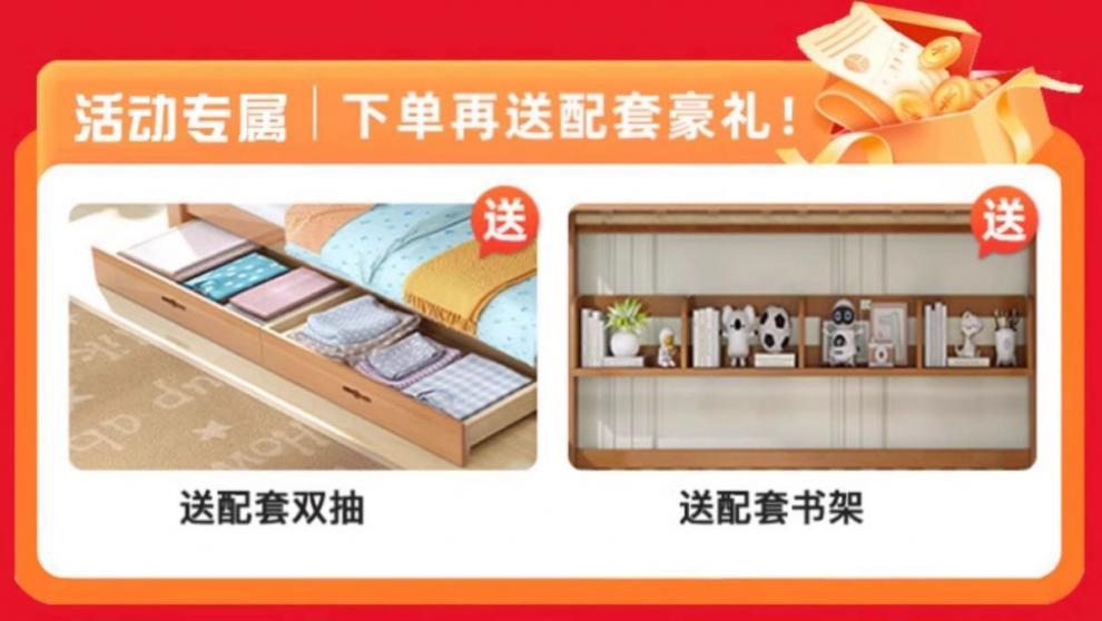 • [호박색 사다리 캐비닛 모델] 친환경 매트리스 + 서랍 + 책장 + 설치 무료