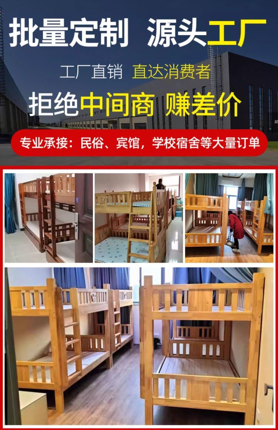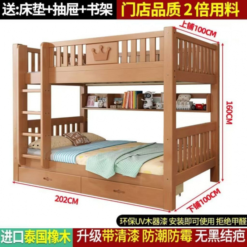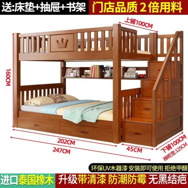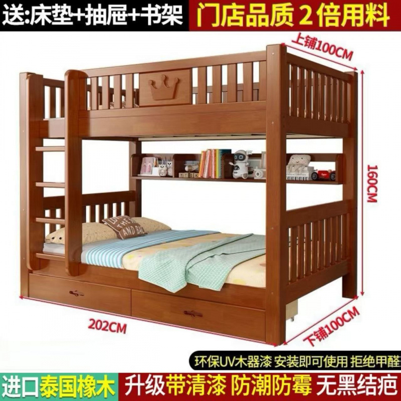 어린이 단단한 나무 침대 이층 침대 기숙사 침대 2 층 고무 나무 침대 작은 아파트 높고 낮은 가구