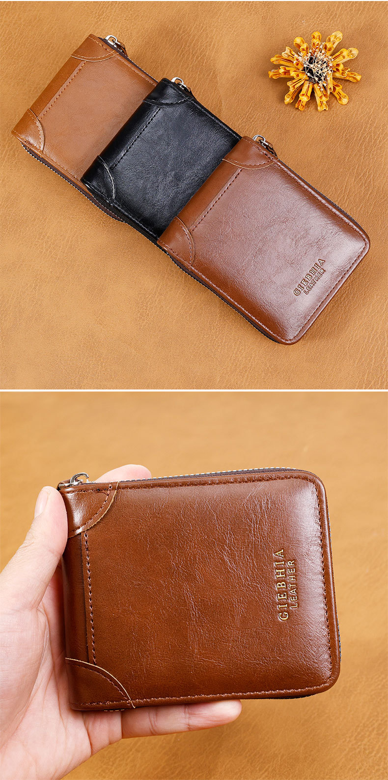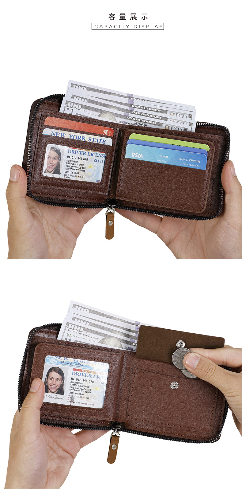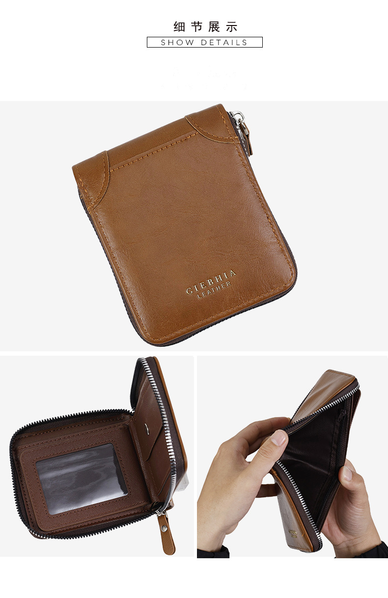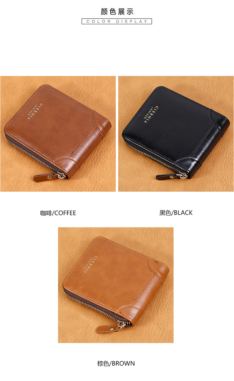 빈티지 남자 지갑 남자의 하이 엔드 짧은 지퍼 지갑 간단한 패션 대용량 남성 신용 카드 가방스토어 가기
