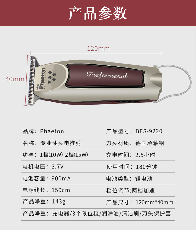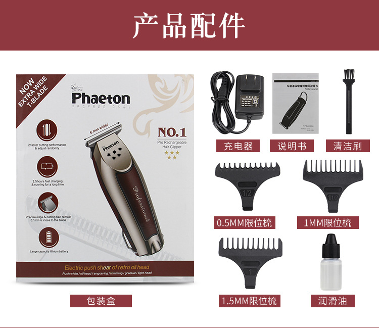 레트로 오일 헤드 페이더 새겨진 맨발 이발사 가위 머리 머리 클리퍼 헤어 살롱 페이튼 전기 클리퍼