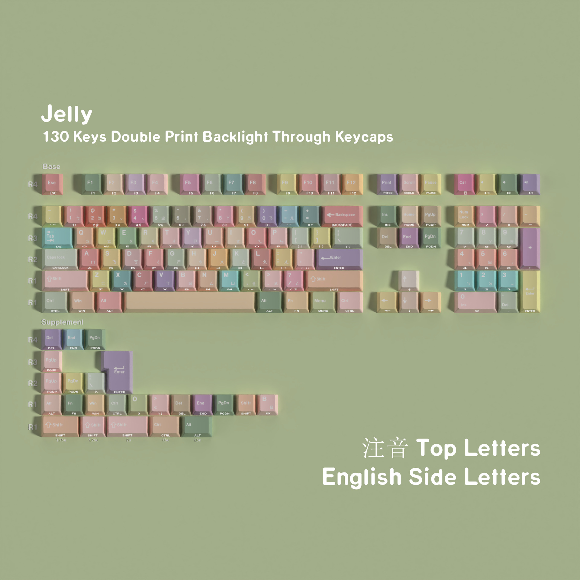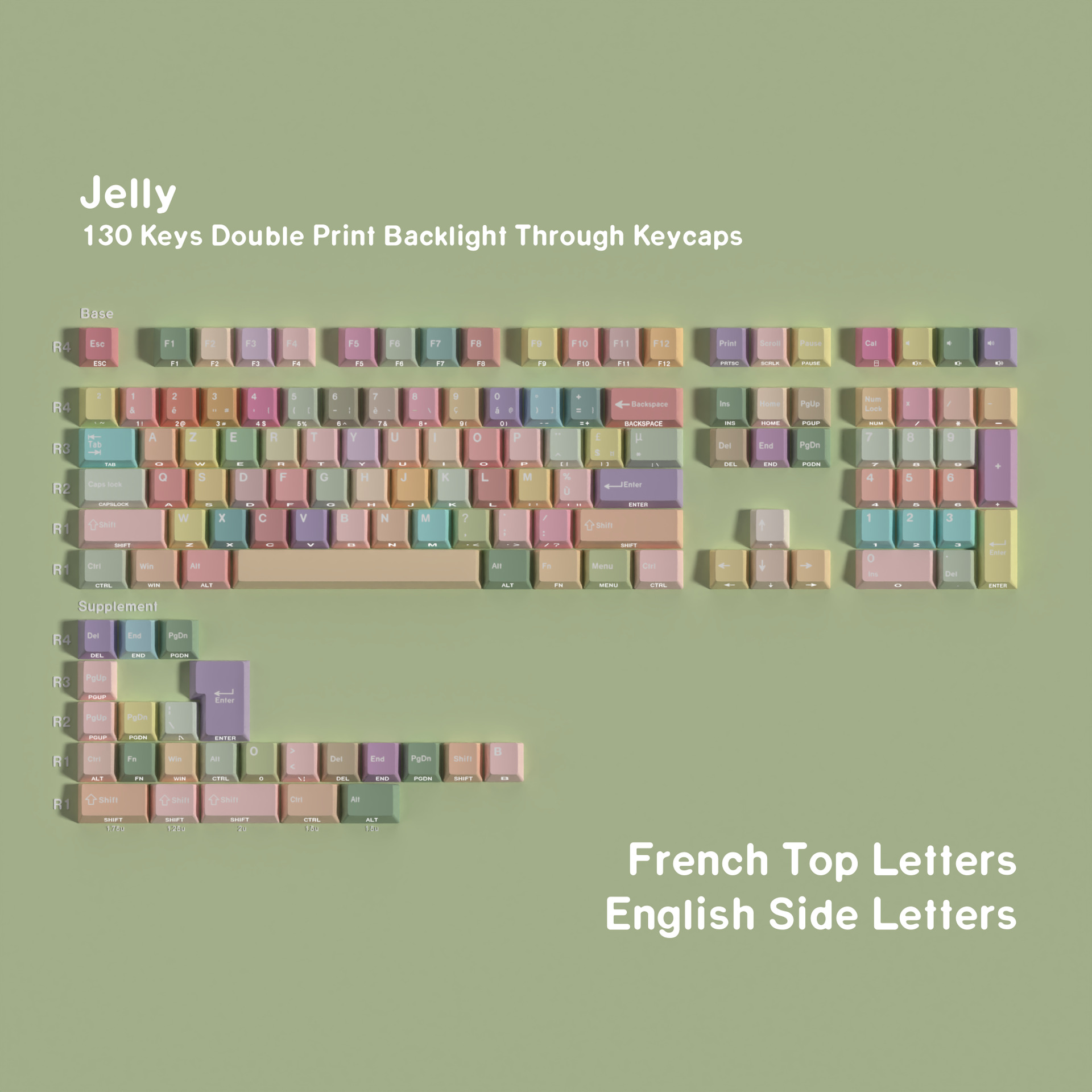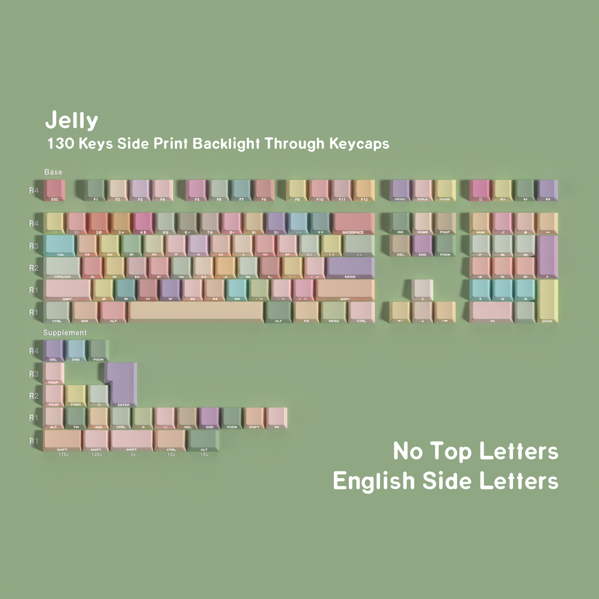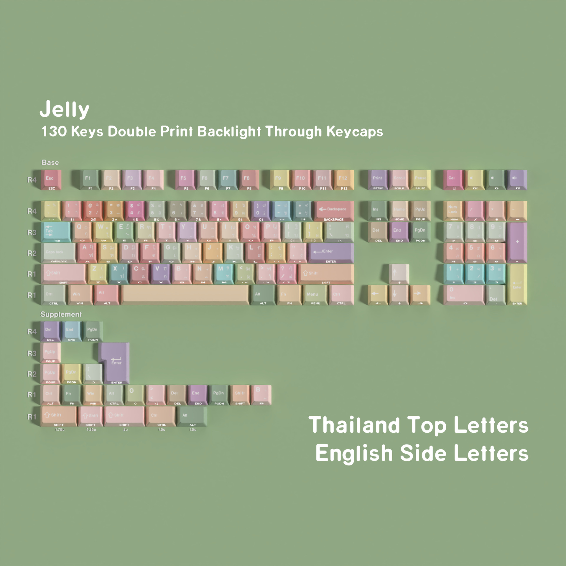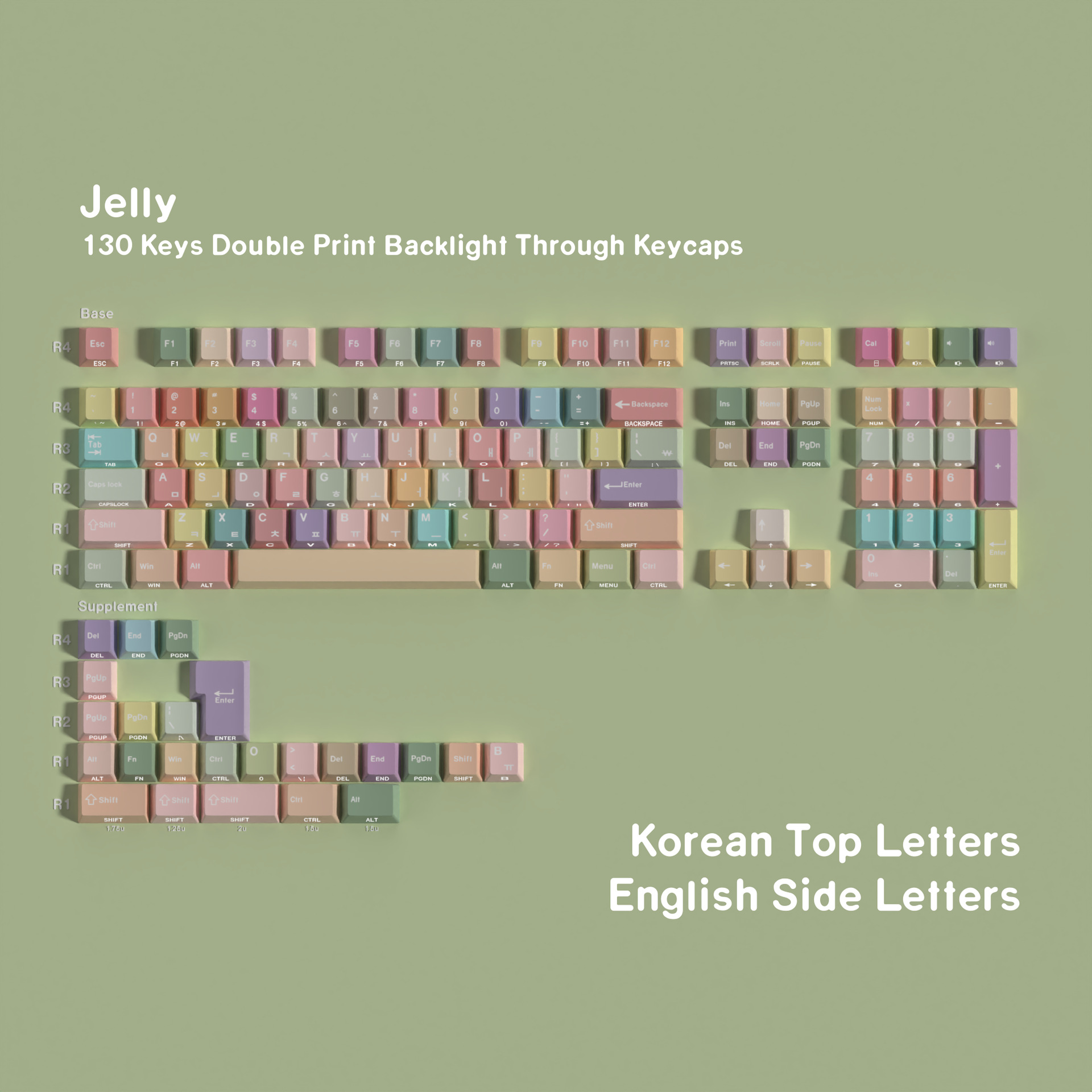 JCM 젤리 더블 각인 투명 Pbt 원래 전체 세트 키 캡 한국 러시아 태국 유럽 규칙 작은 언어 우팅