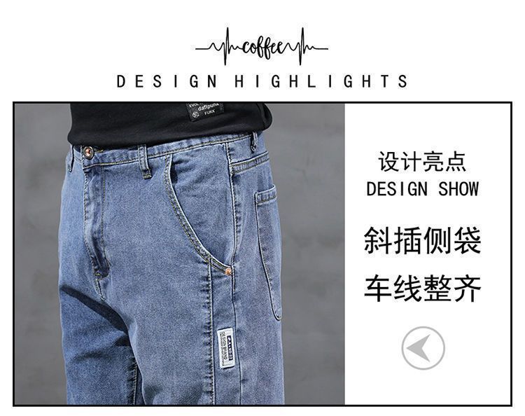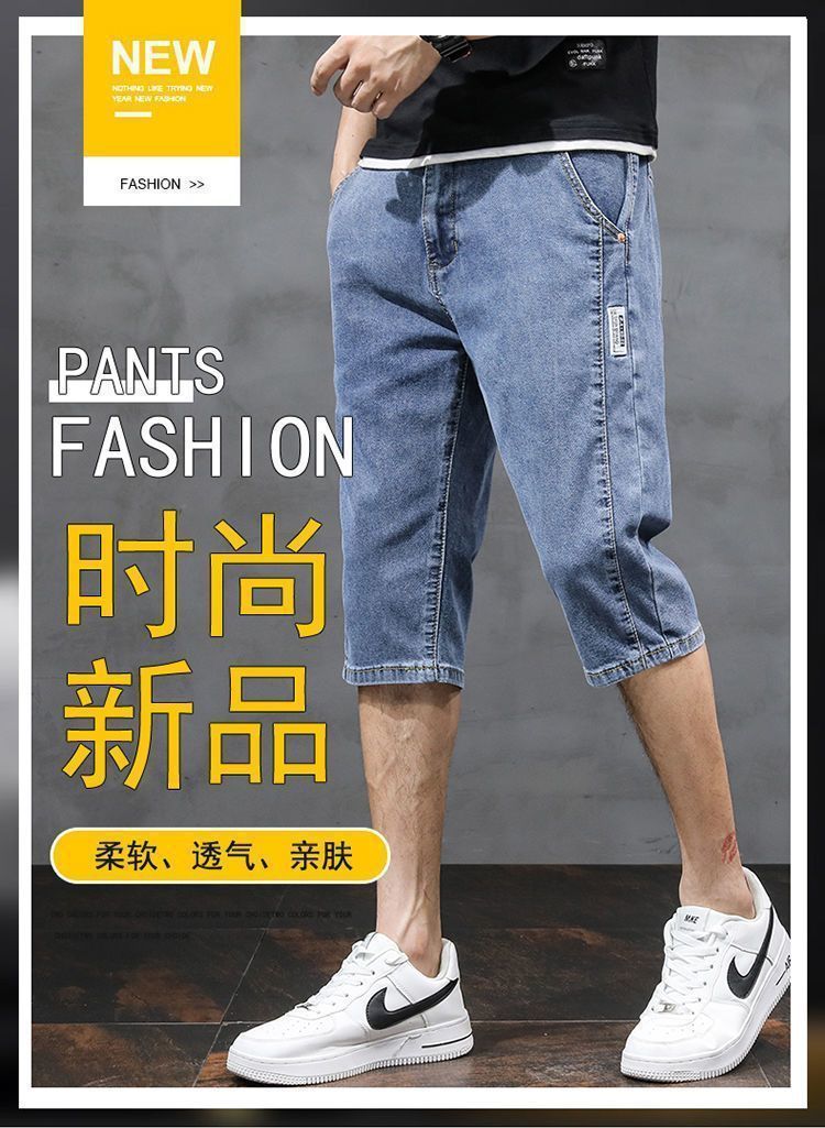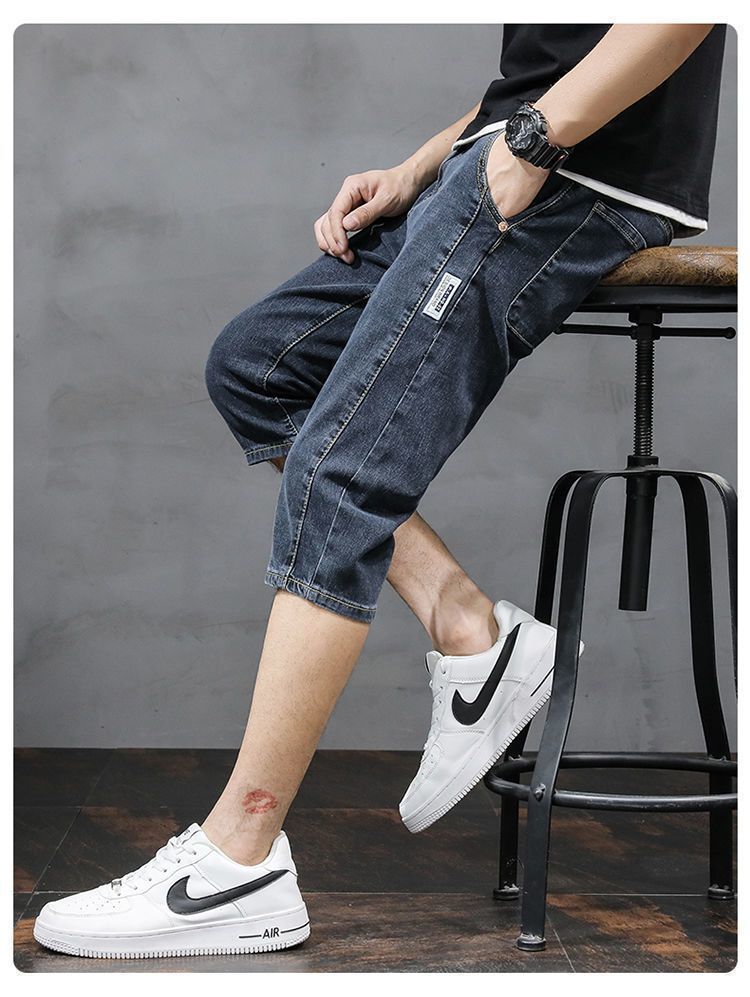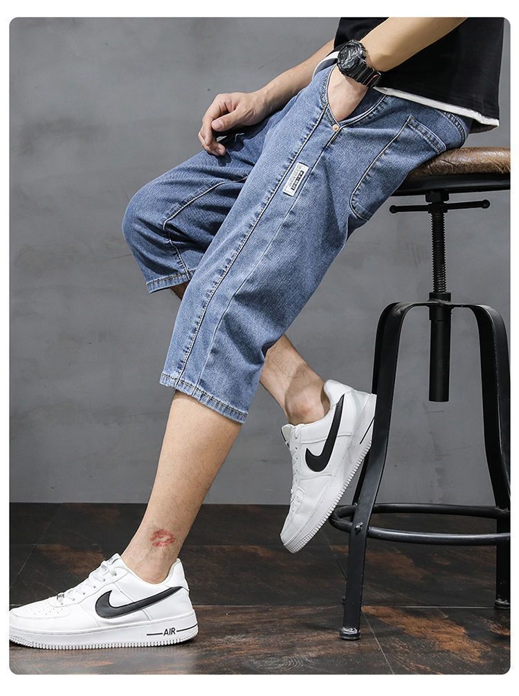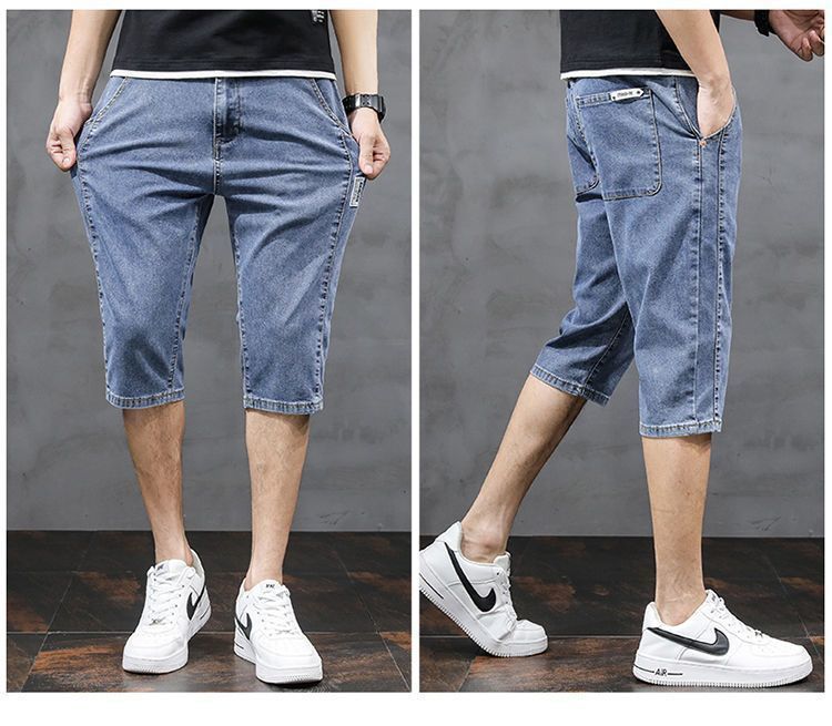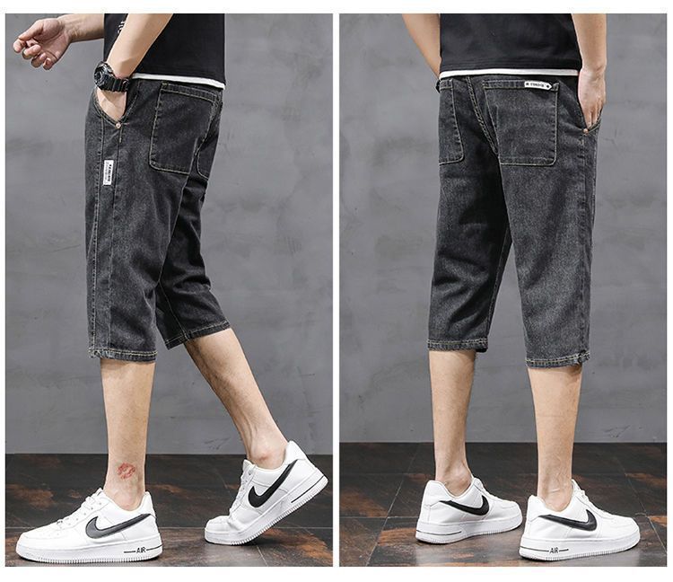 데님 자른 바지 남자 2025 년 새 패션 올매치 느슨한 캐주얼 반바지 한국식 올매치 작업 스트레이트 바지