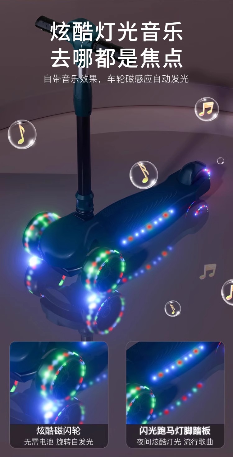 • [애플 그린 - 자동차 바구니 보내기] 5CM 전복 방지 플래시 휠 + 음악 + 이중 나일론 플레이트 + 알루미늄 합금 핸들바