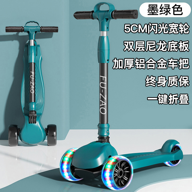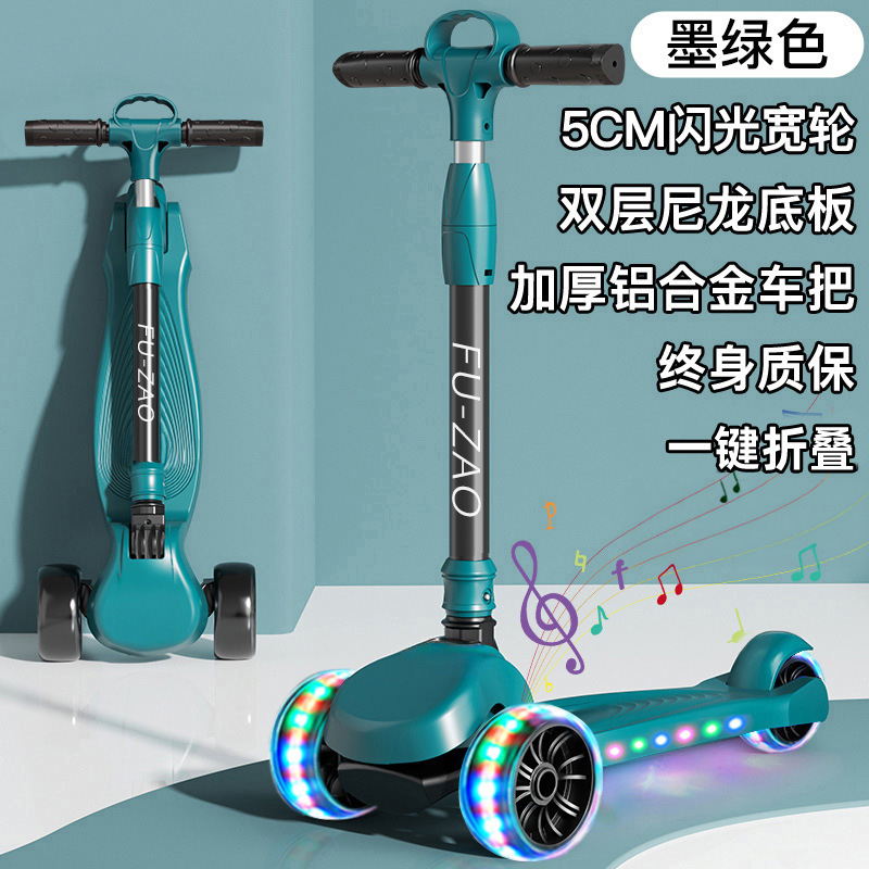 • [짙은 녹색 - 자동차 바구니 보내기] 5CM 전복 방지 플래시 휠 + 음악 + 이중 나일론 플레이트 + 알루미늄 합금 핸들바