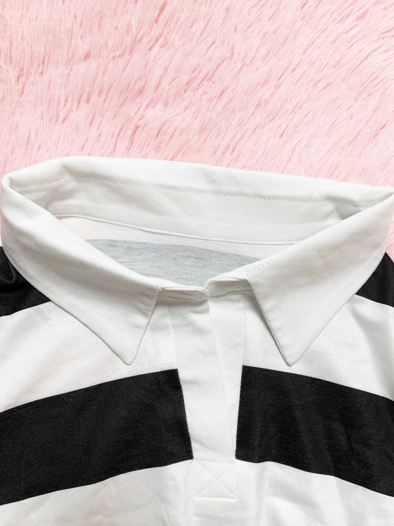 TW683 유럽과 미국의 국경 간 대외 무역 패션 여성 줄무늬 색상 대비 배꼽 짧은 옷깃 최고 엉덩이 치마 세트스토어 가기