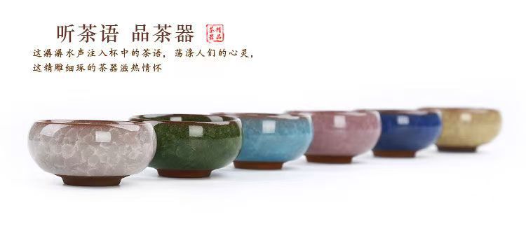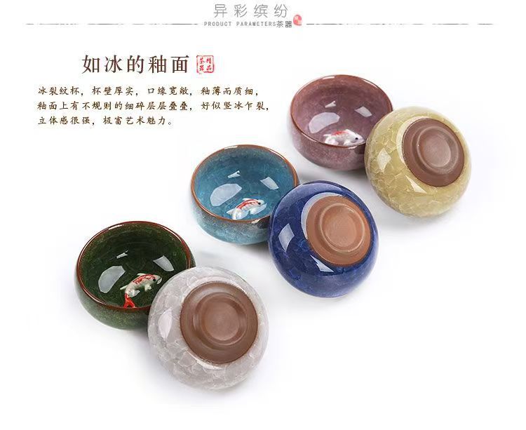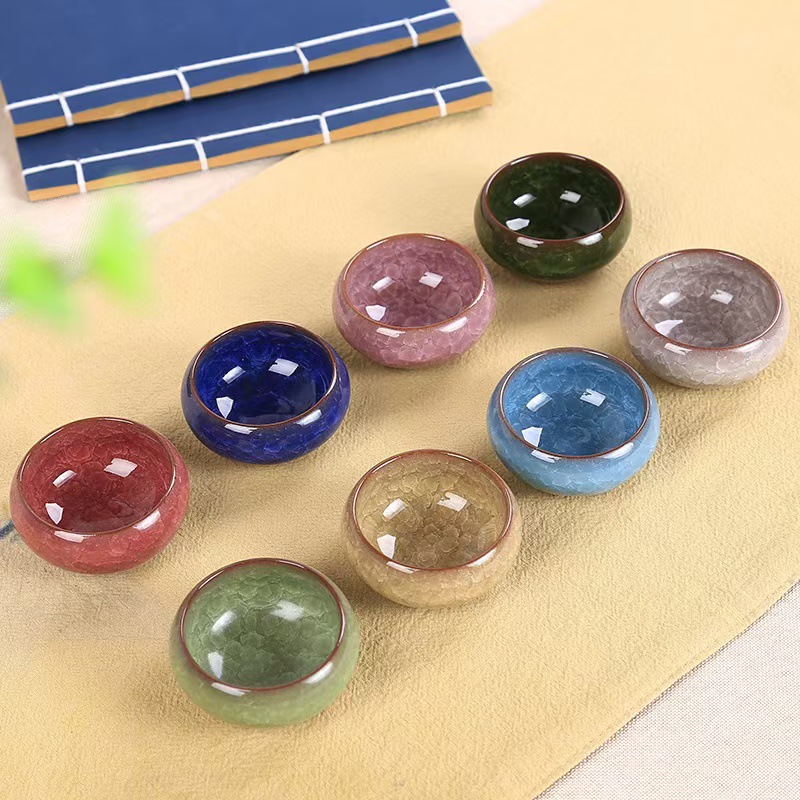 다채로운 얼음결 무늬 도자기 찻잔 도매, 자주색 점토 공예 차 세트, 티컵, 주인용 컵, 얼음결 무늬 작은 찻잔스토어 가기