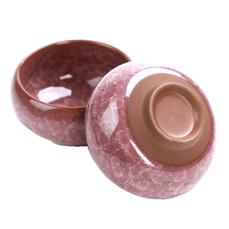 다채로운 얼음결 무늬 도자기 찻잔 도매, 자주색 점토 공예 차 세트, 티컵, 주인용 컵, 얼음결 무늬 작은 찻잔
