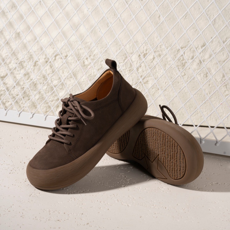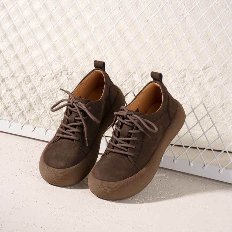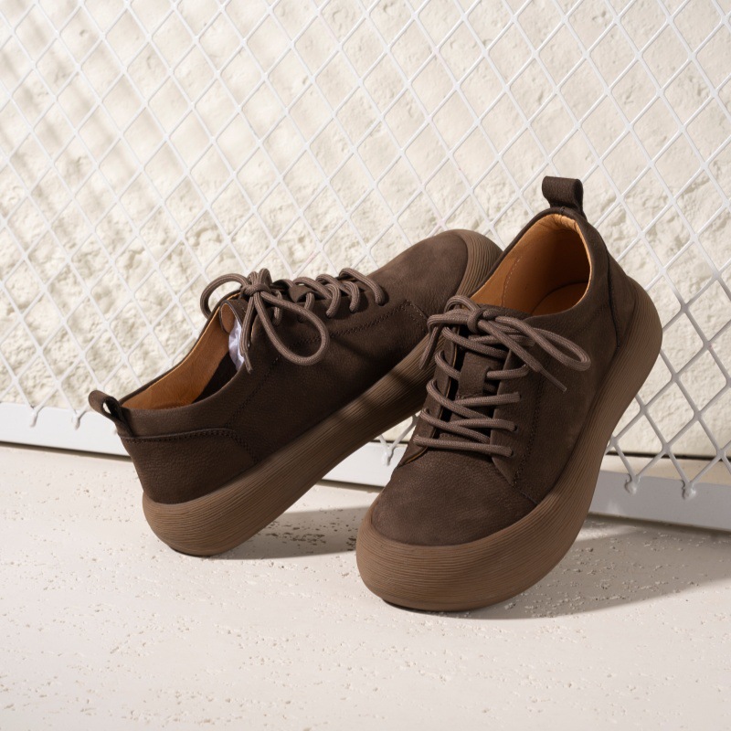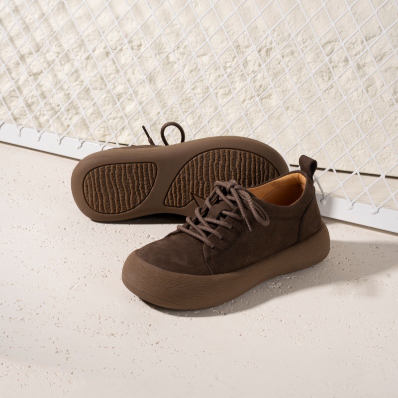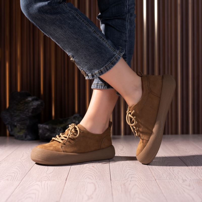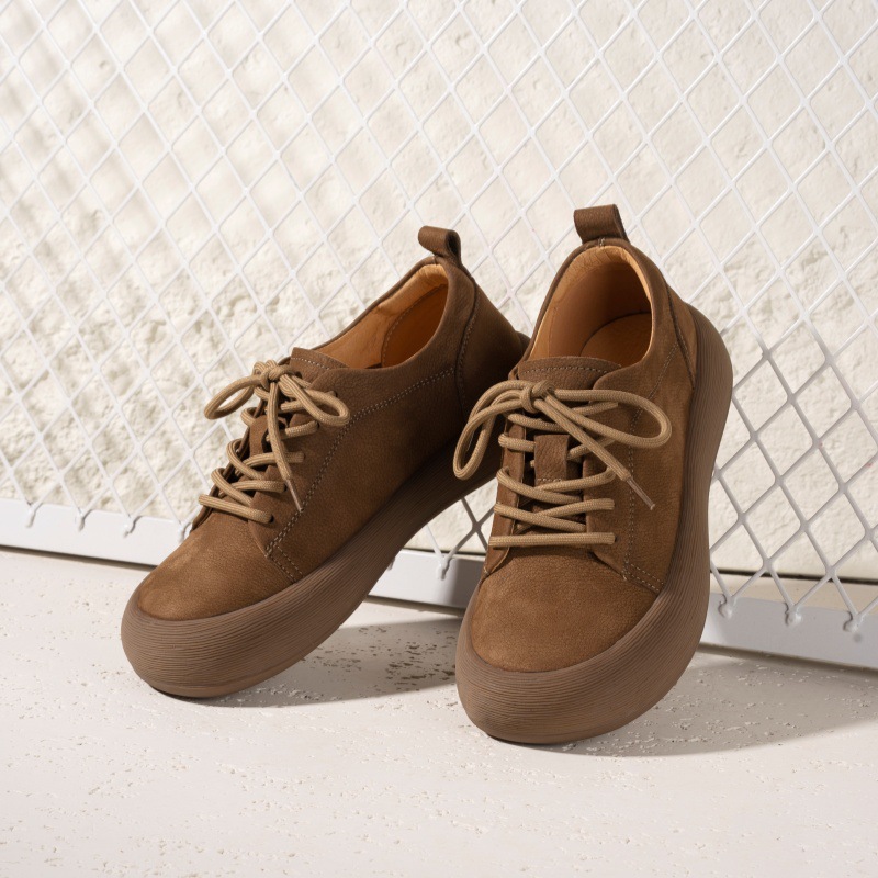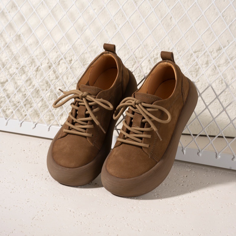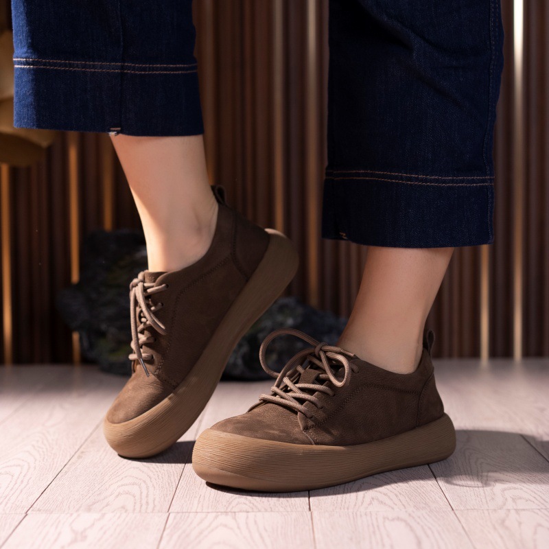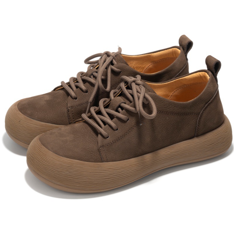 여성 1 층 소 가죽 신발 2025 새로운 두꺼운 밑창 레이스 업 부드러운 가죽 부드러운 밑창 캐주얼 신발 평평한 큰 머리 못생긴 귀여운 신발스토어 가기