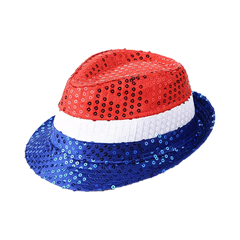 독립기념일 빨간색, 흰색 및 파란색 재즈 모자 빨간색, 흰색 및 파란색 모자 스팽글 모자 카니발 무대 나비 넥타이 재즈 모자스토어 가기