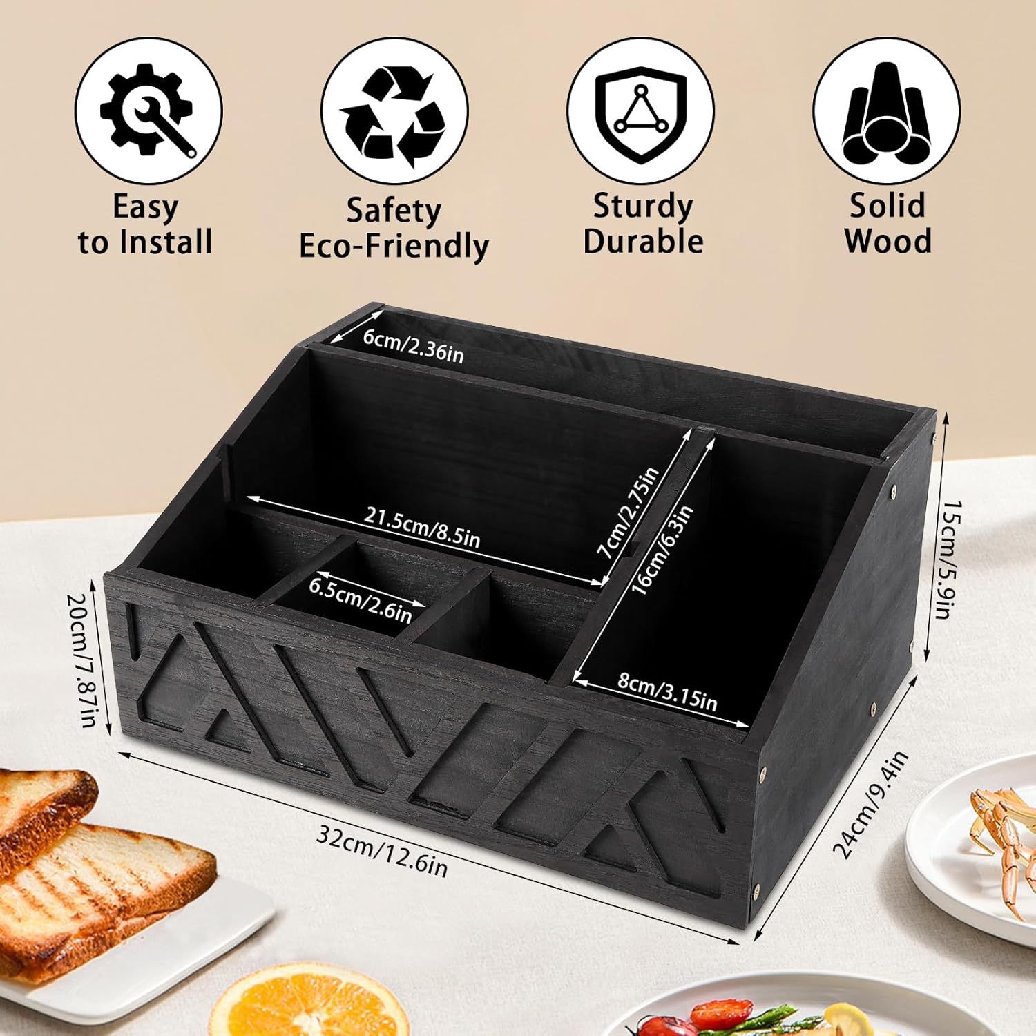 간단한 검은 나무 식기 보관 상자 라떼 커피 캡슐 정리 상자 데스크탑 원격 제어 종이컵 보관 상자