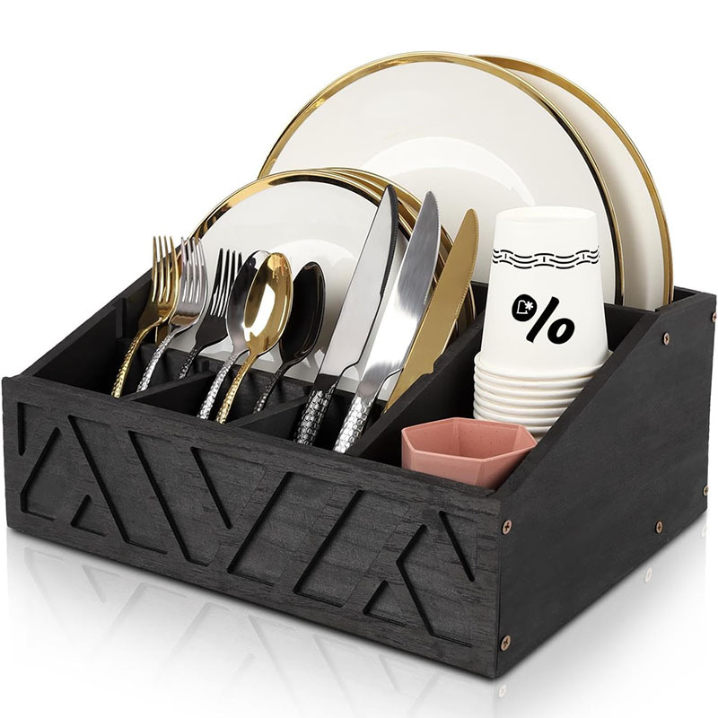 간단한 검은 나무 식기 보관 상자 라떼 커피 캡슐 정리 상자 데스크탑 원격 제어 종이컵 보관 상자스토어 가기