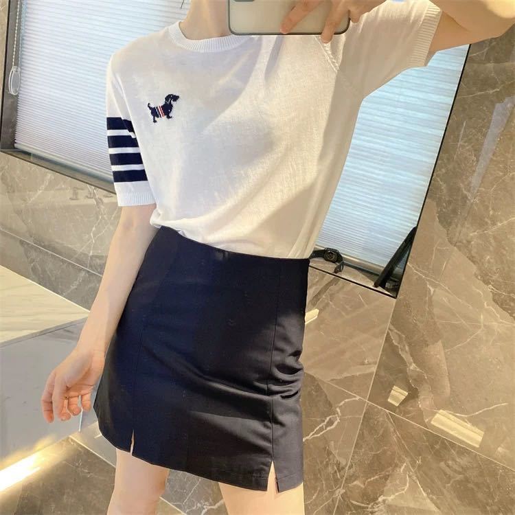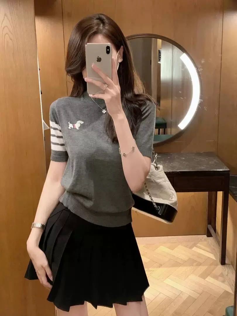 여름 패션 새로운 다목적 강아지 양면 자카드 반팔 스웨터 라운드 넥 캐주얼 질감 부드럽고 변형되지 않음