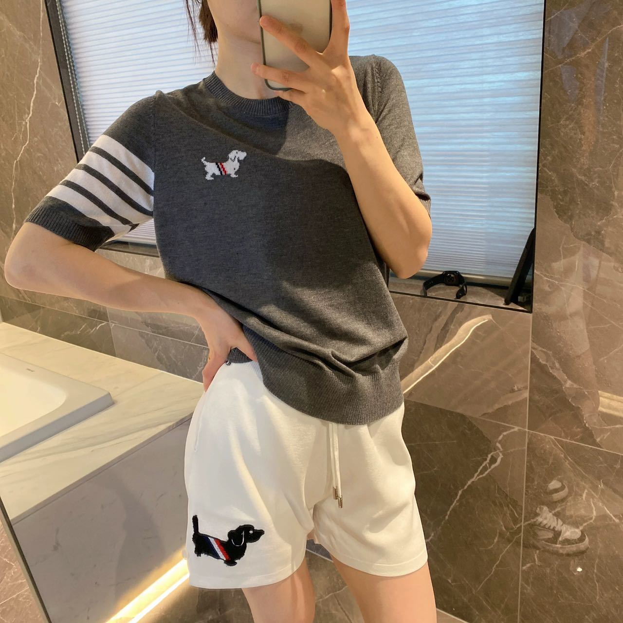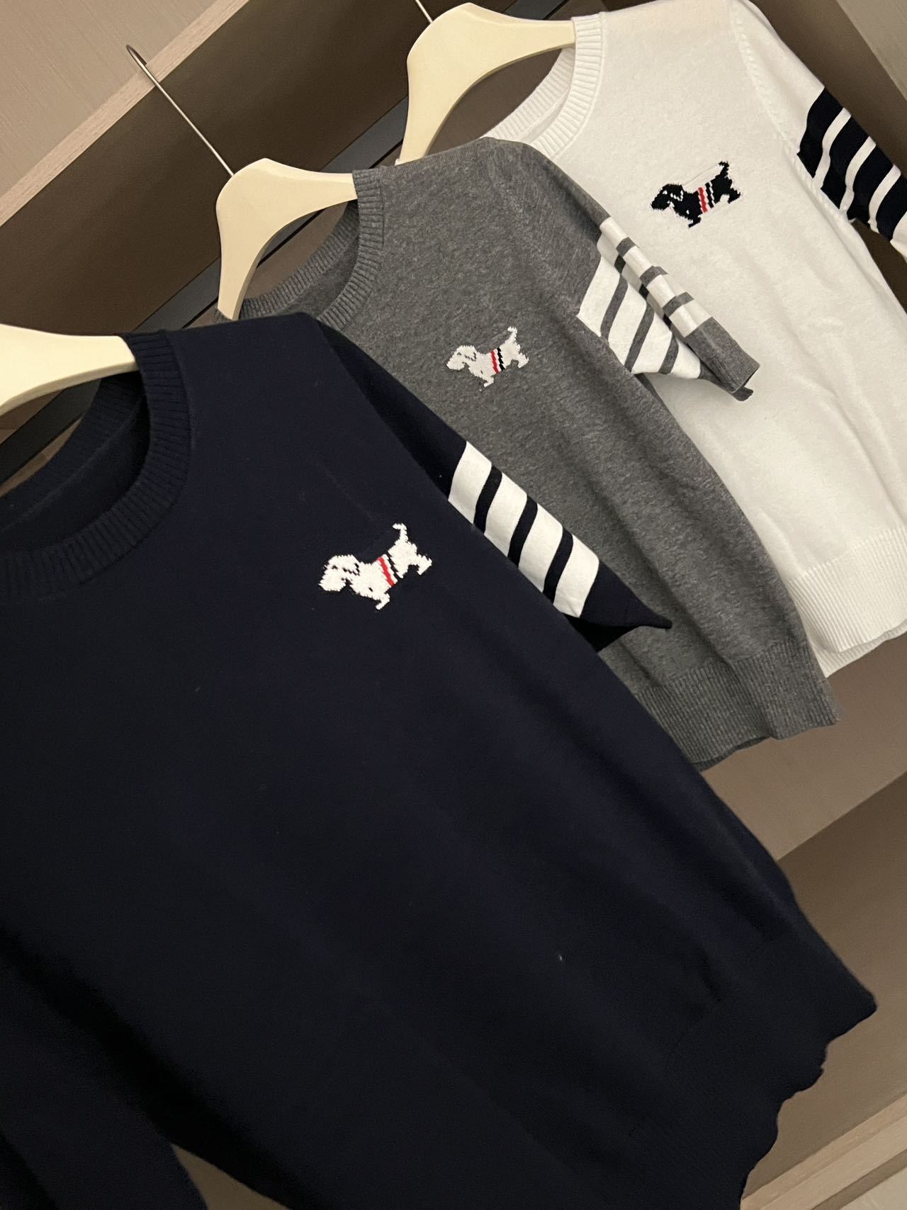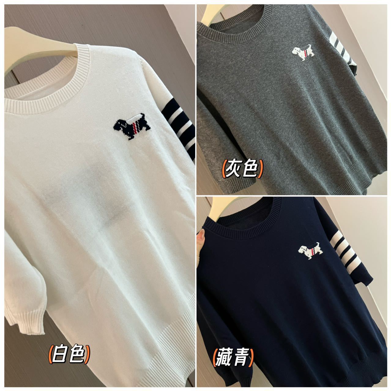 여름 패션 새로운 다목적 강아지 양면 자카드 반팔 스웨터 라운드 넥 캐주얼 질감 부드럽고 변형되지 않음스토어 가기