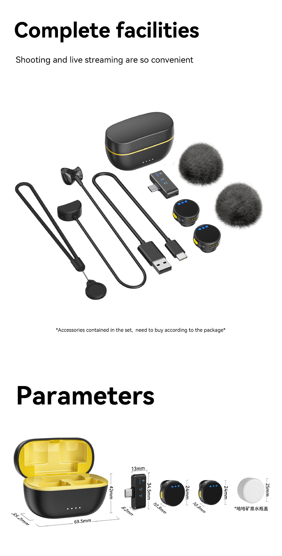 • 검정색 및 노란색 Type-C 1대2 표준 구성 + 방풍 후드*2 + 모니터링 + 랜야드 + Apple 어댑터
