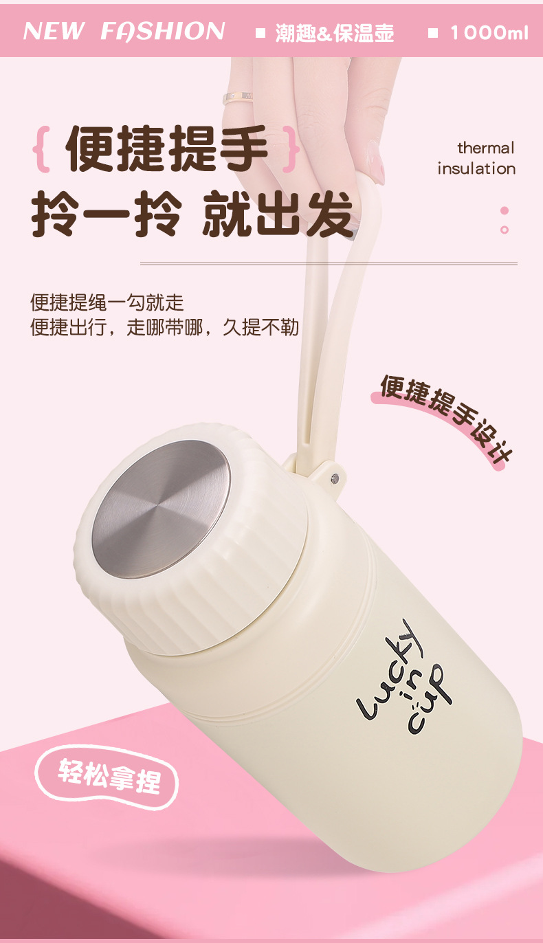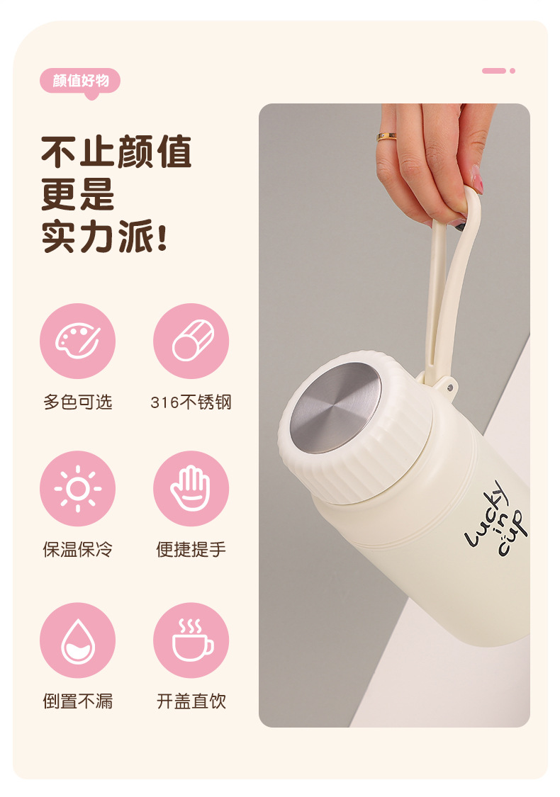 고급스러운 316 스테인리스 대용량 보온병, 차망이 있는 야외 스포츠 물병, 차량용 손잡이 선물컵스토어 가기
