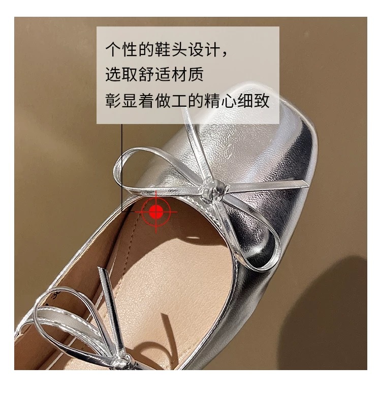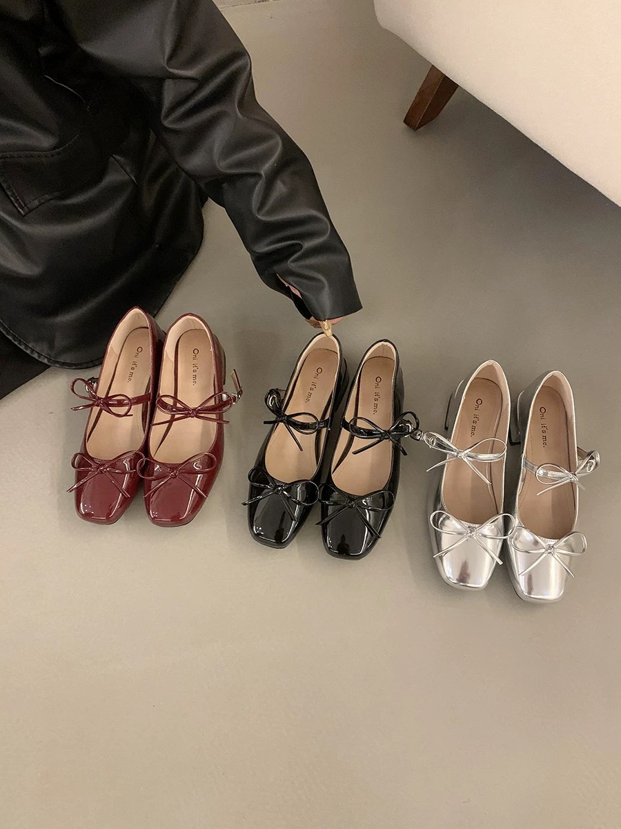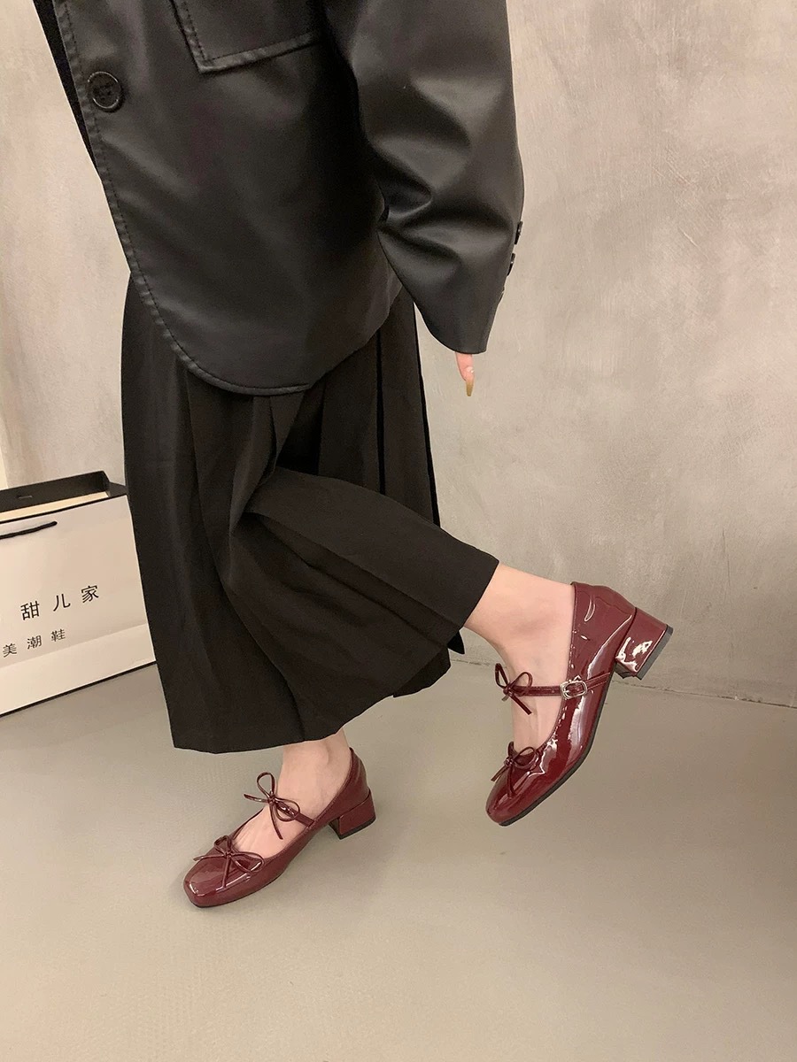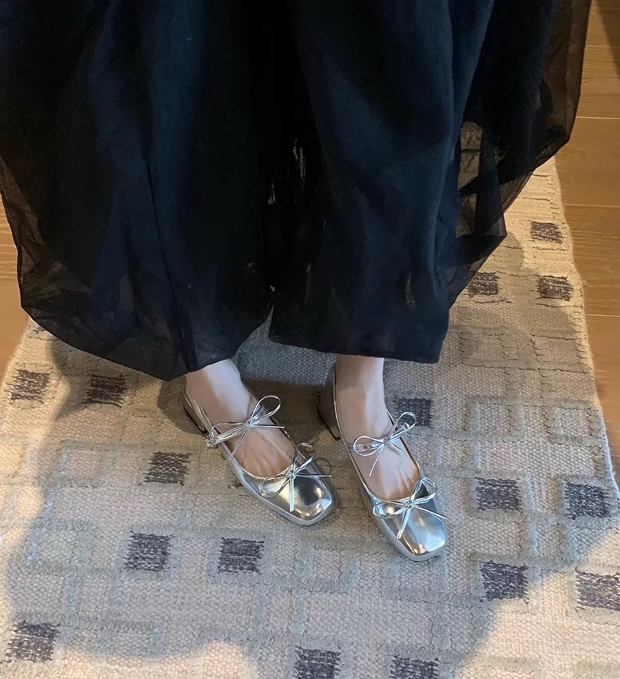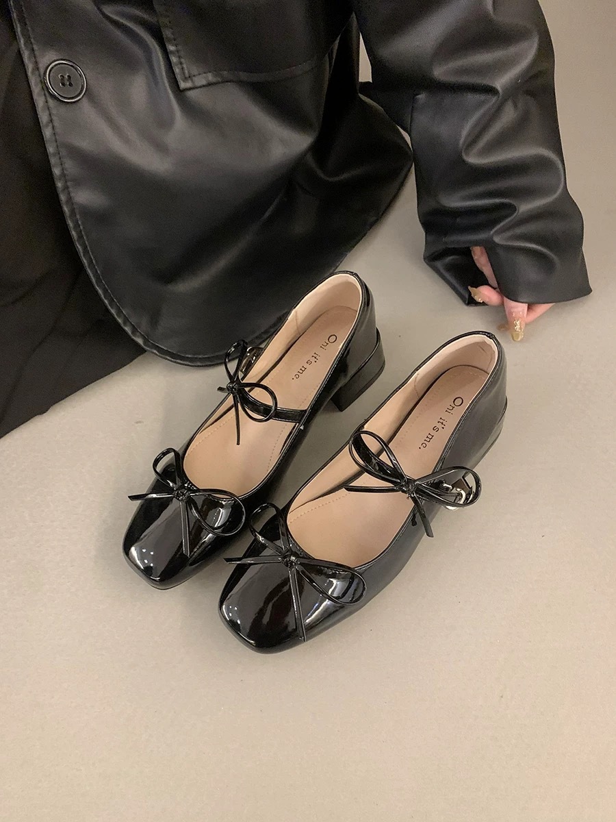 실버 프렌치 보우 메리 제인 신발 여성의 2025 새로운 봄 두꺼운 힐 우아한 올 매치 스커트 작은 가죽 신발스토어 가기