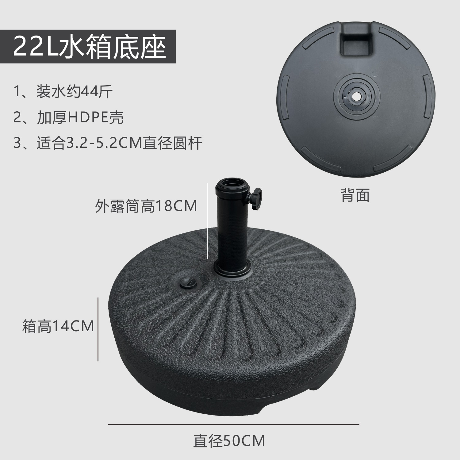 • 다용도 받침대: 22L 물탱크 원형 (3.2-5.2CM 파이프 모두 사용 가능)