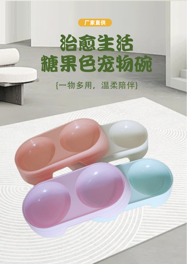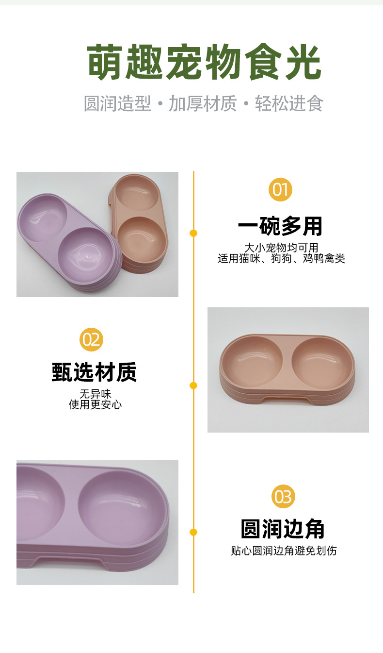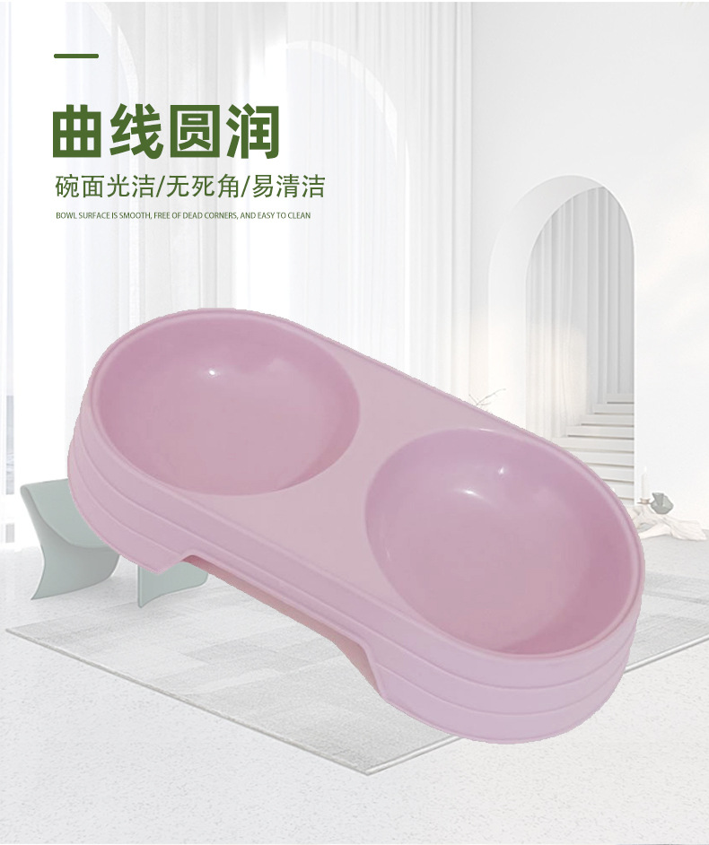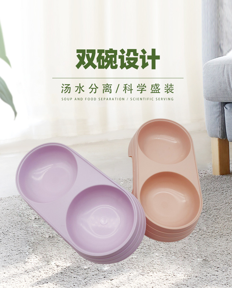 플라스틱 애완동물 밥그릇 타원형 이중 그릇 고양이 식기 도매 블루 퍼플 핑크 베이지 고양이 모래 매트 흘러내림 방지스토어 가기