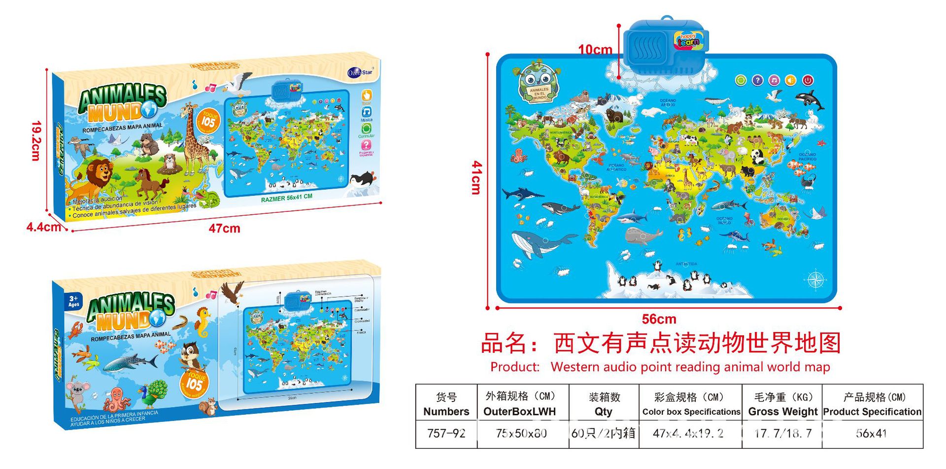 국경 간 어린이 동물 벽 차트 아기 조기 교육 계발 오디오 벽 차트 사운드 음성 독서 부모-자식 대화 형 장난감