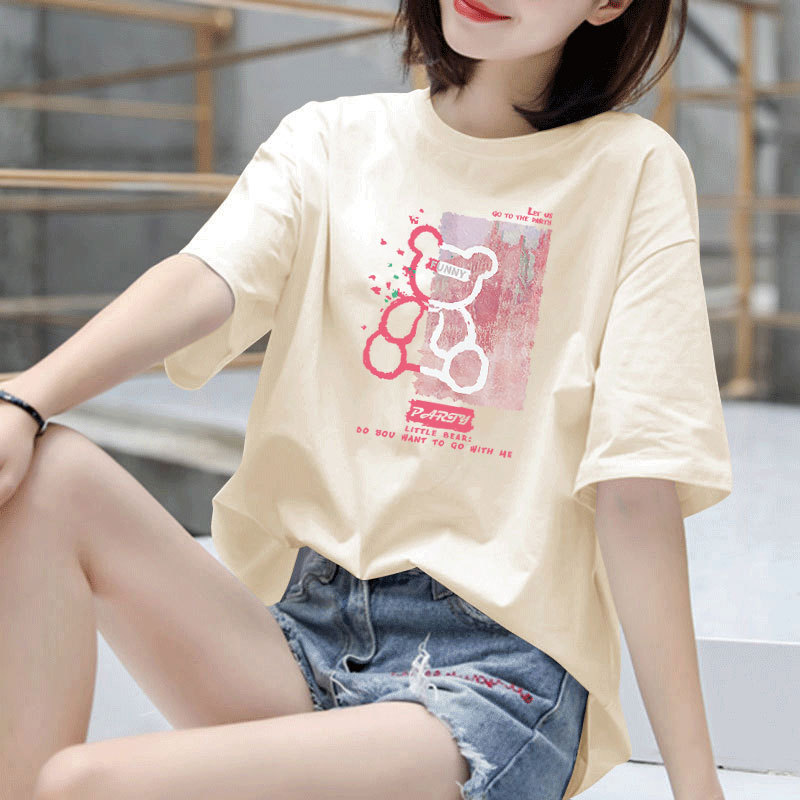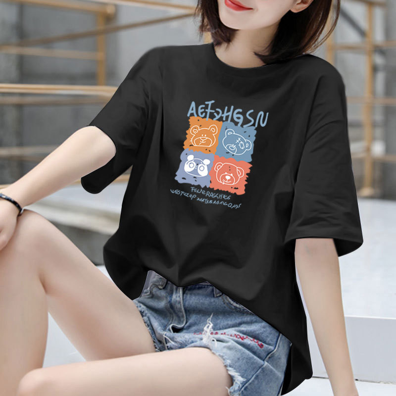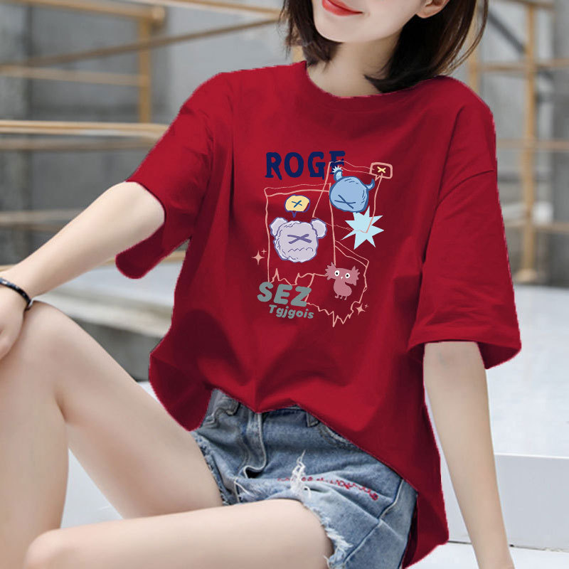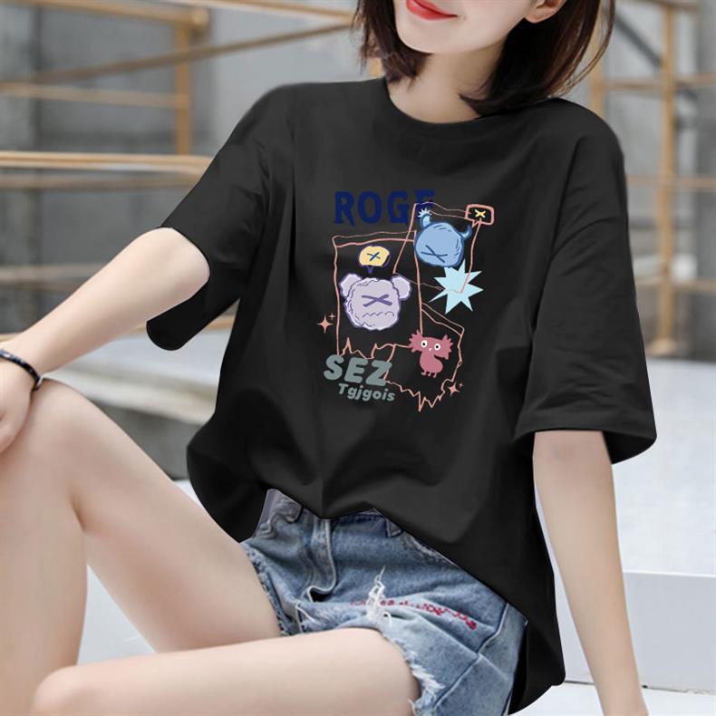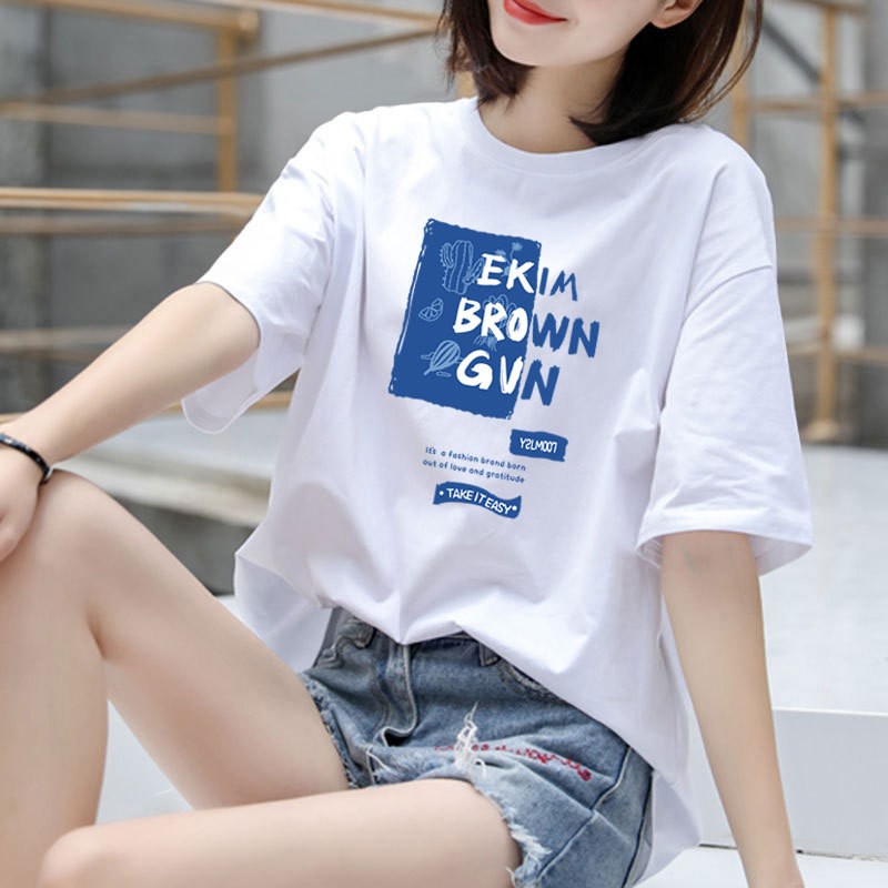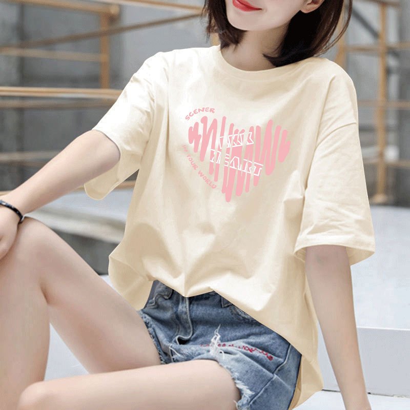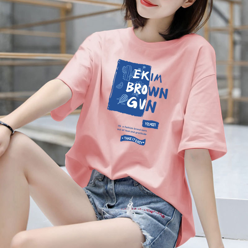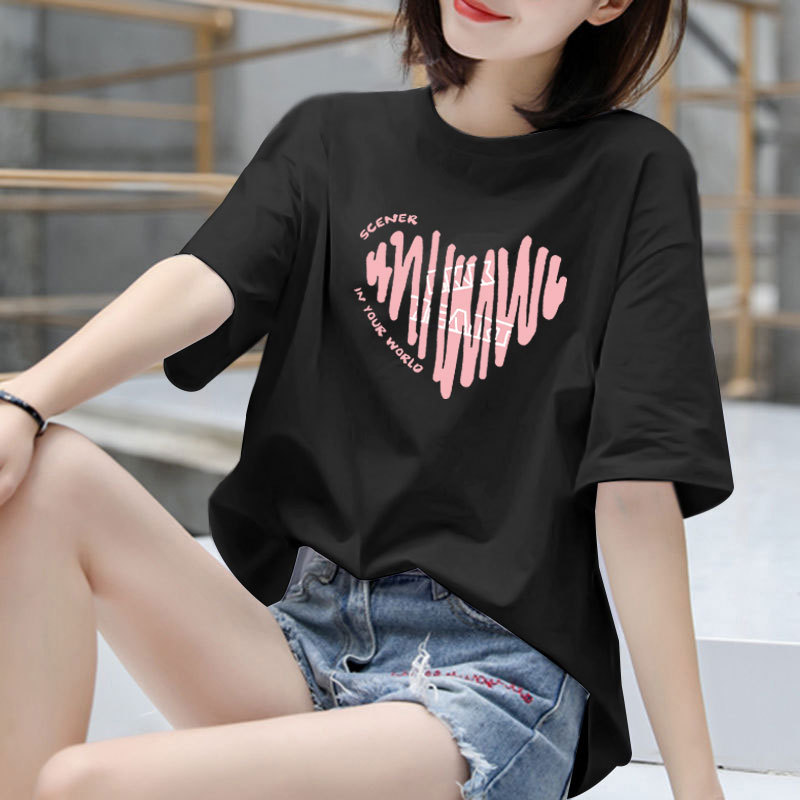 100 면 반팔 티셔츠 여자 2025 신여름 플러스 사이즈 한국 루즈톱 학생 올매치 서양식 트렌디스토어 가기