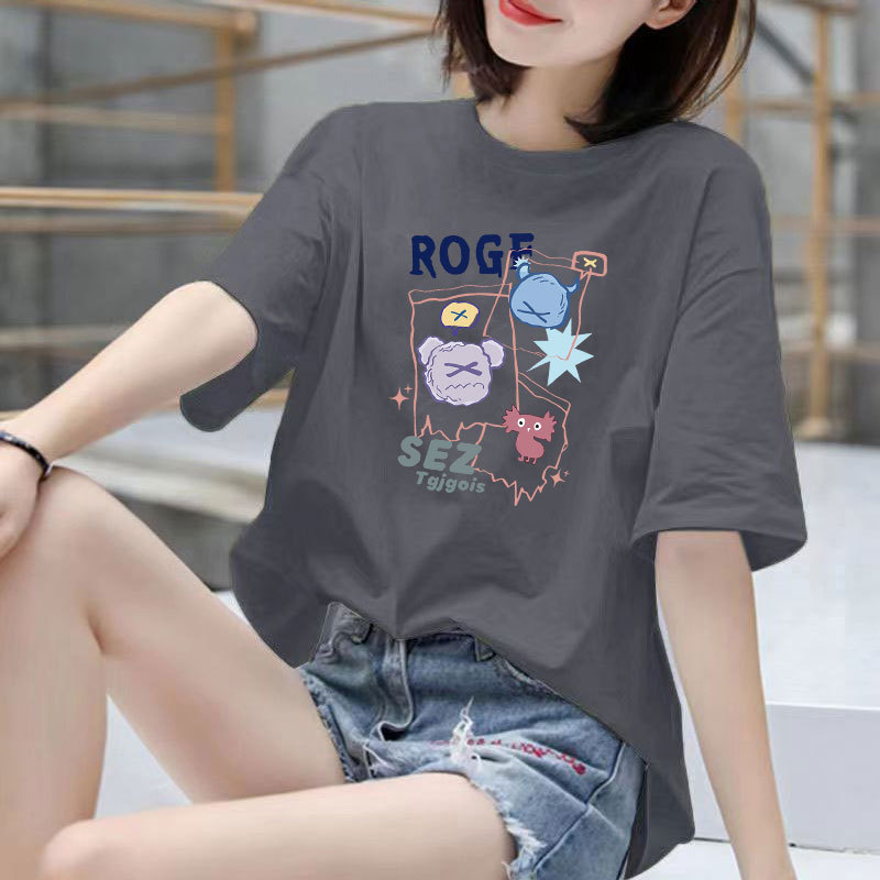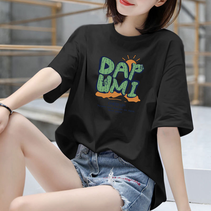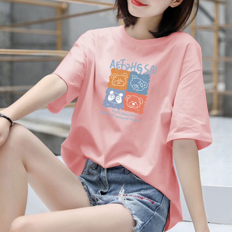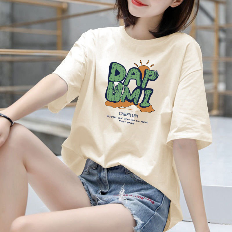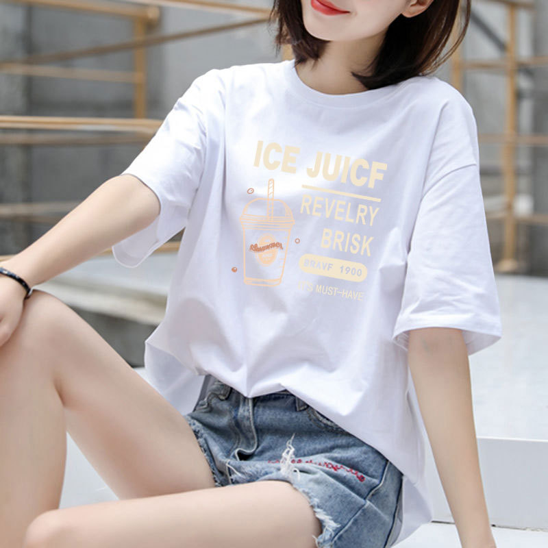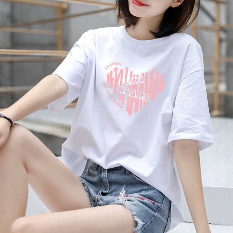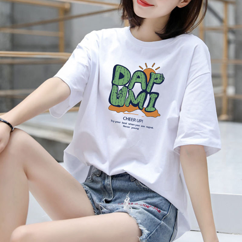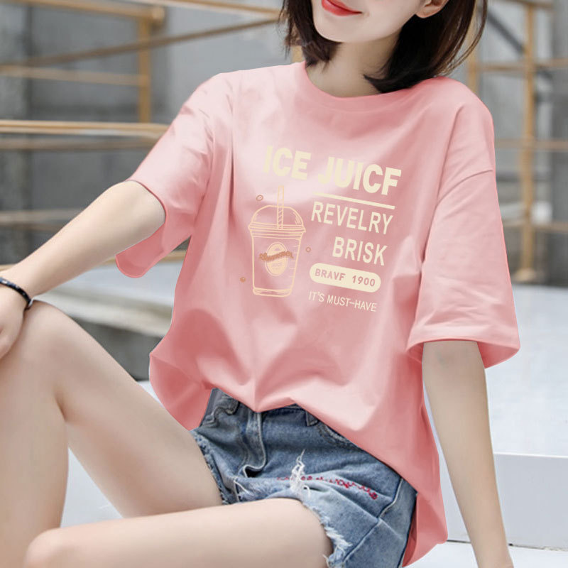 100 면 반팔 티셔츠 여자 2025 신여름 플러스 사이즈 한국 루즈톱 학생 올매치 서양식 트렌디