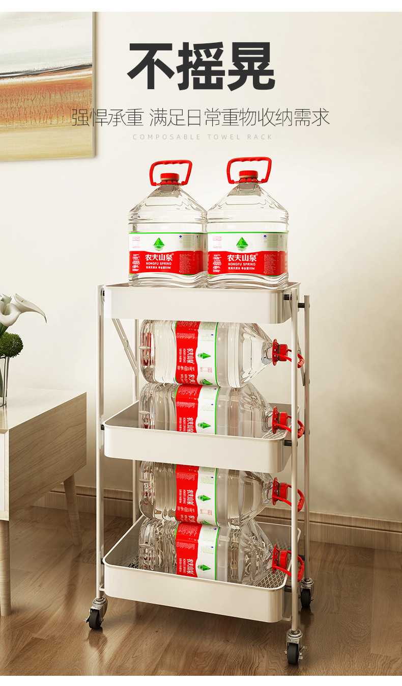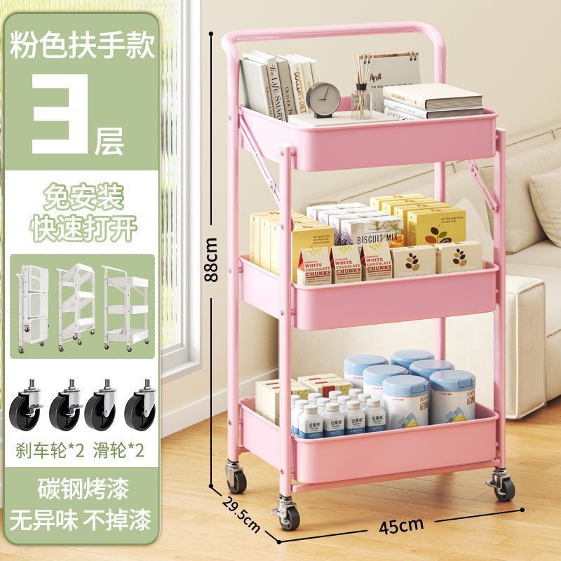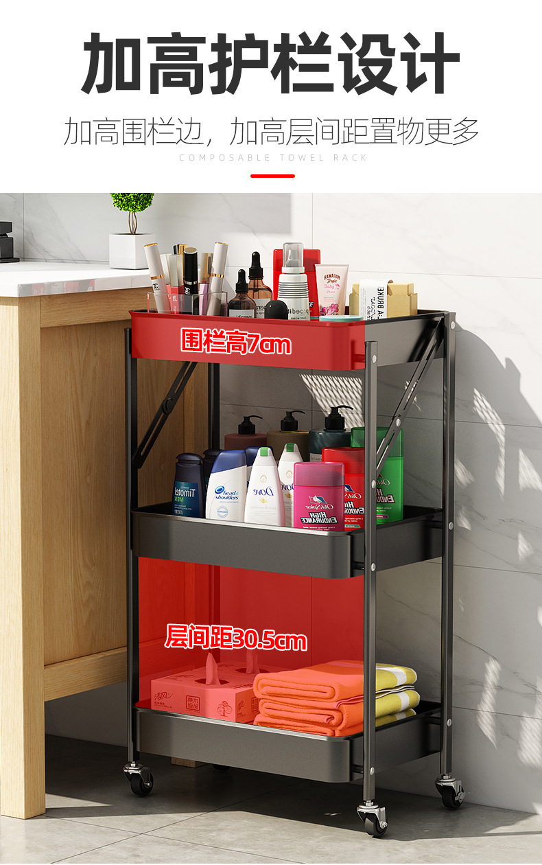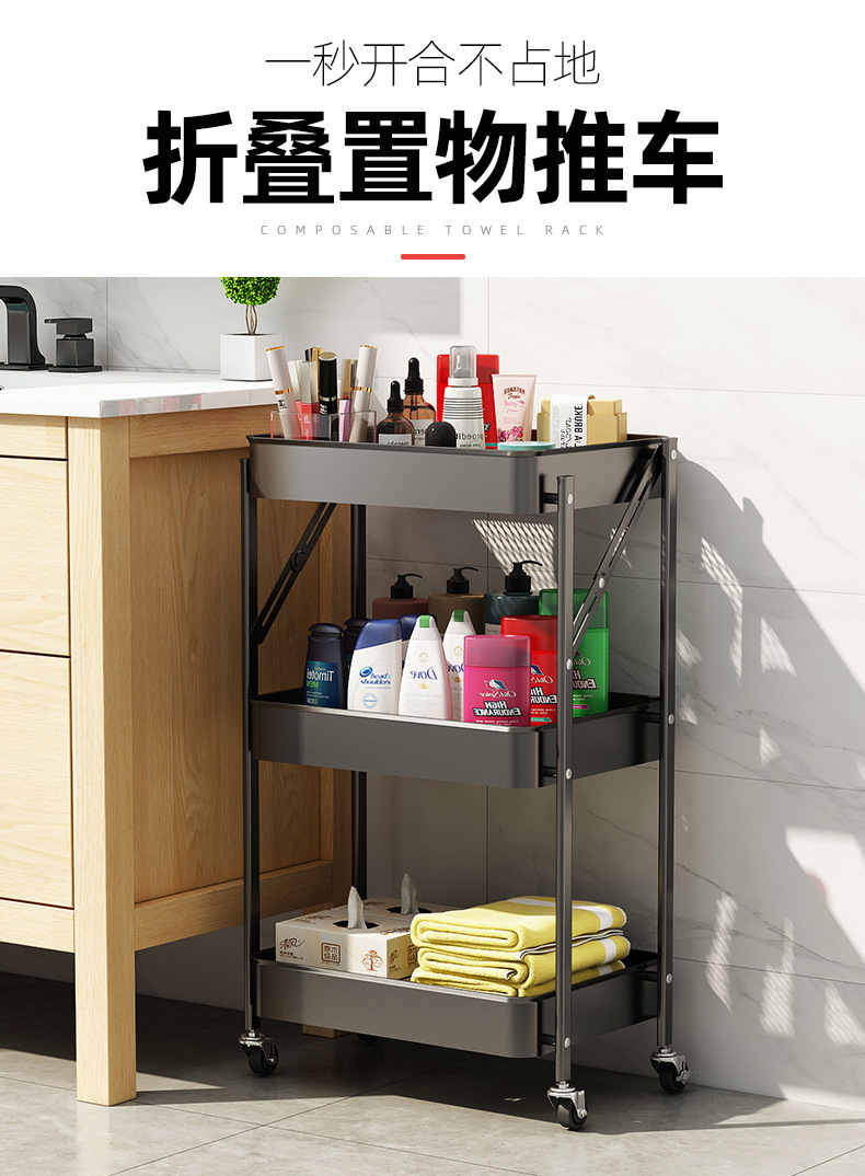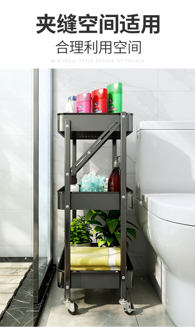 설치가 필요 없는 다층 욕실 정리함, 수납선반, 트롤리, 이동식 거실 수납, 핸드밴드 트롤리스토어 가기