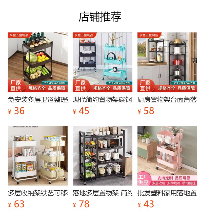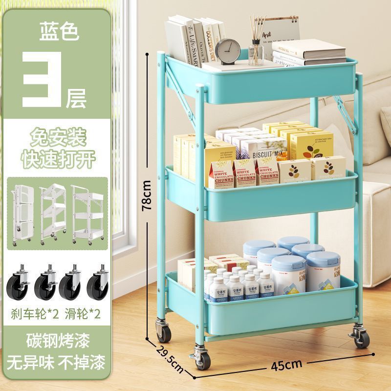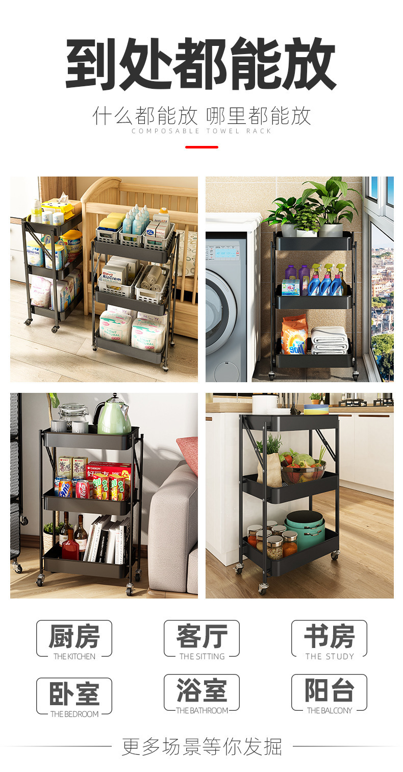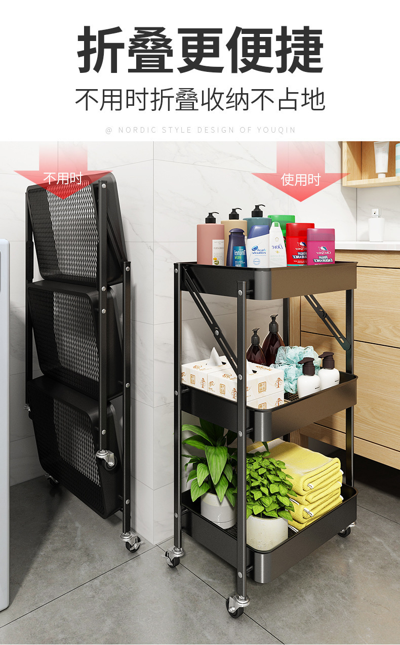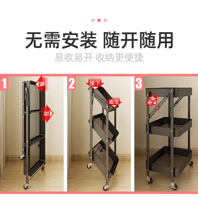 설치가 필요 없는 다층 욕실 정리함, 수납선반, 트롤리, 이동식 거실 수납, 핸드밴드 트롤리스토어 가기