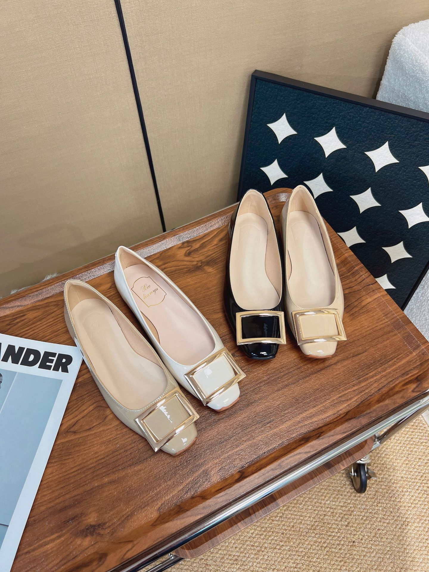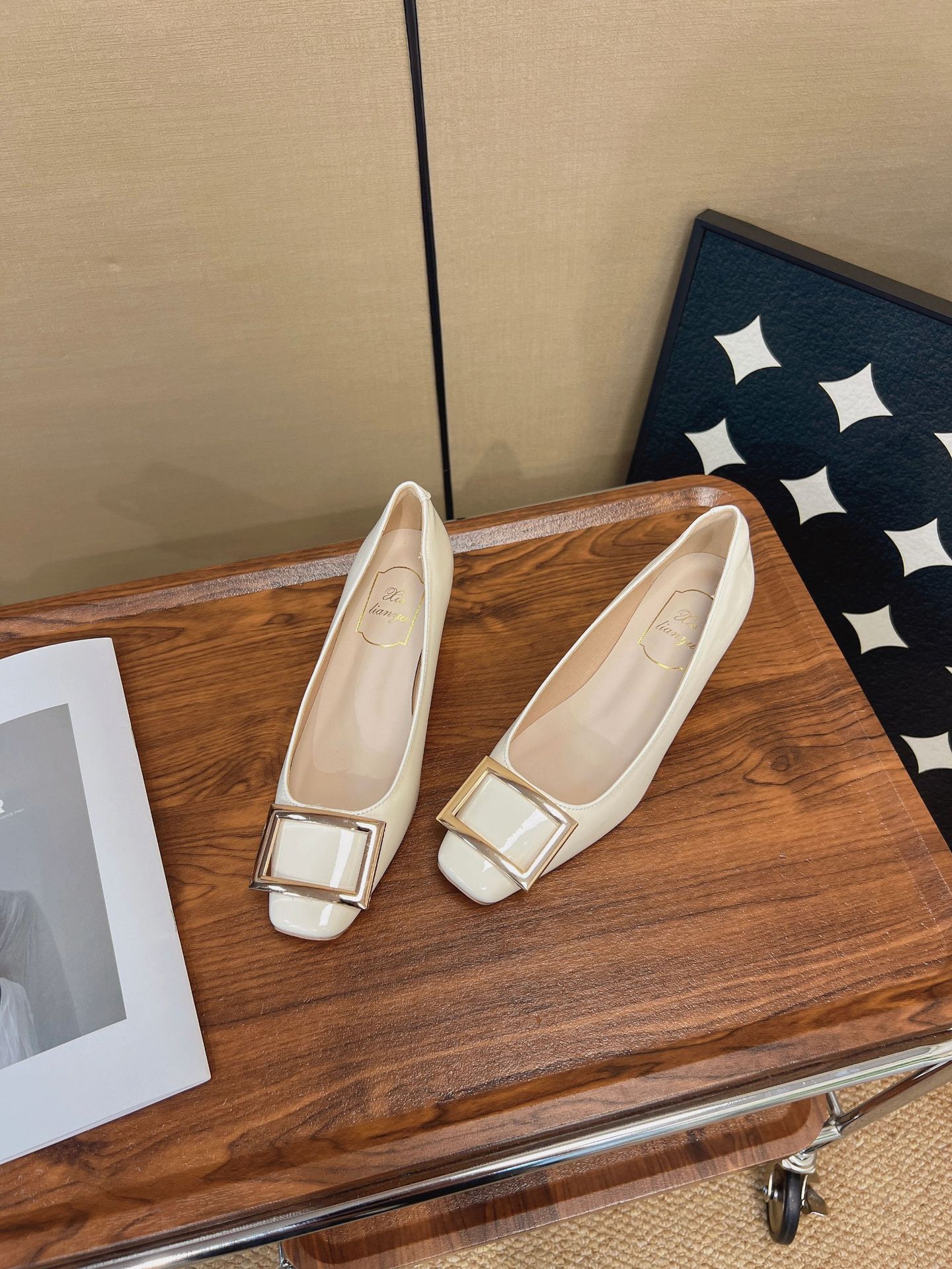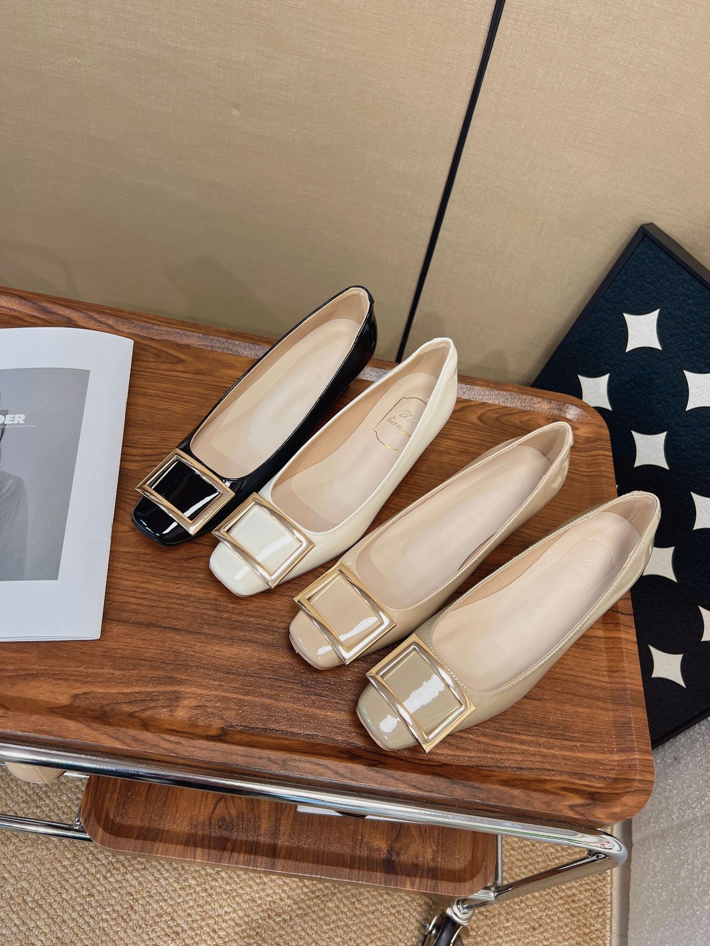 R가족과 같은 스타일의 출퇴근 필수템~ 클래식한 작은 사각코 로우힐, 우아한 사각 버클, 얕은 굽, 부드러운 밑창의 여성용 하이힐