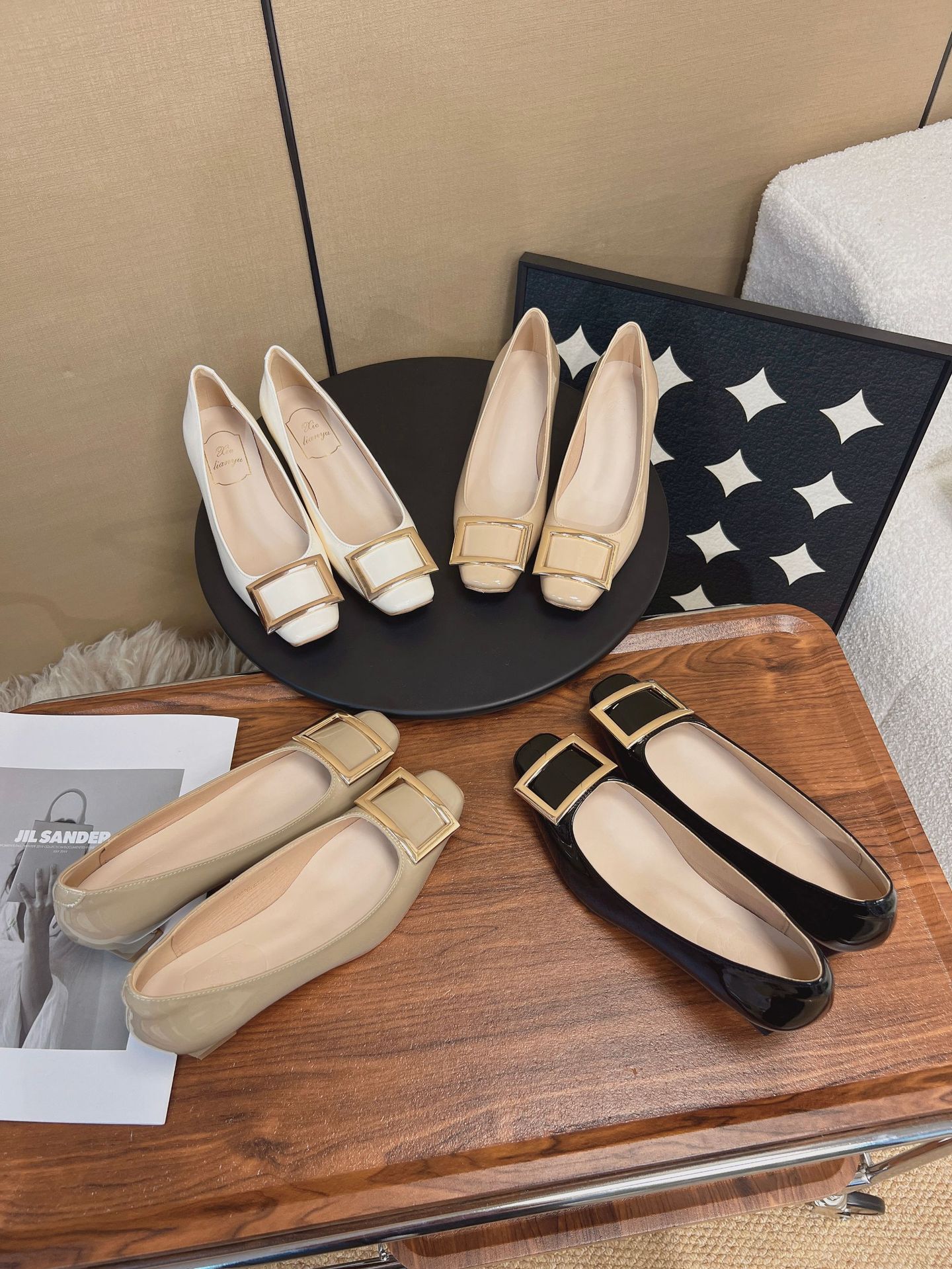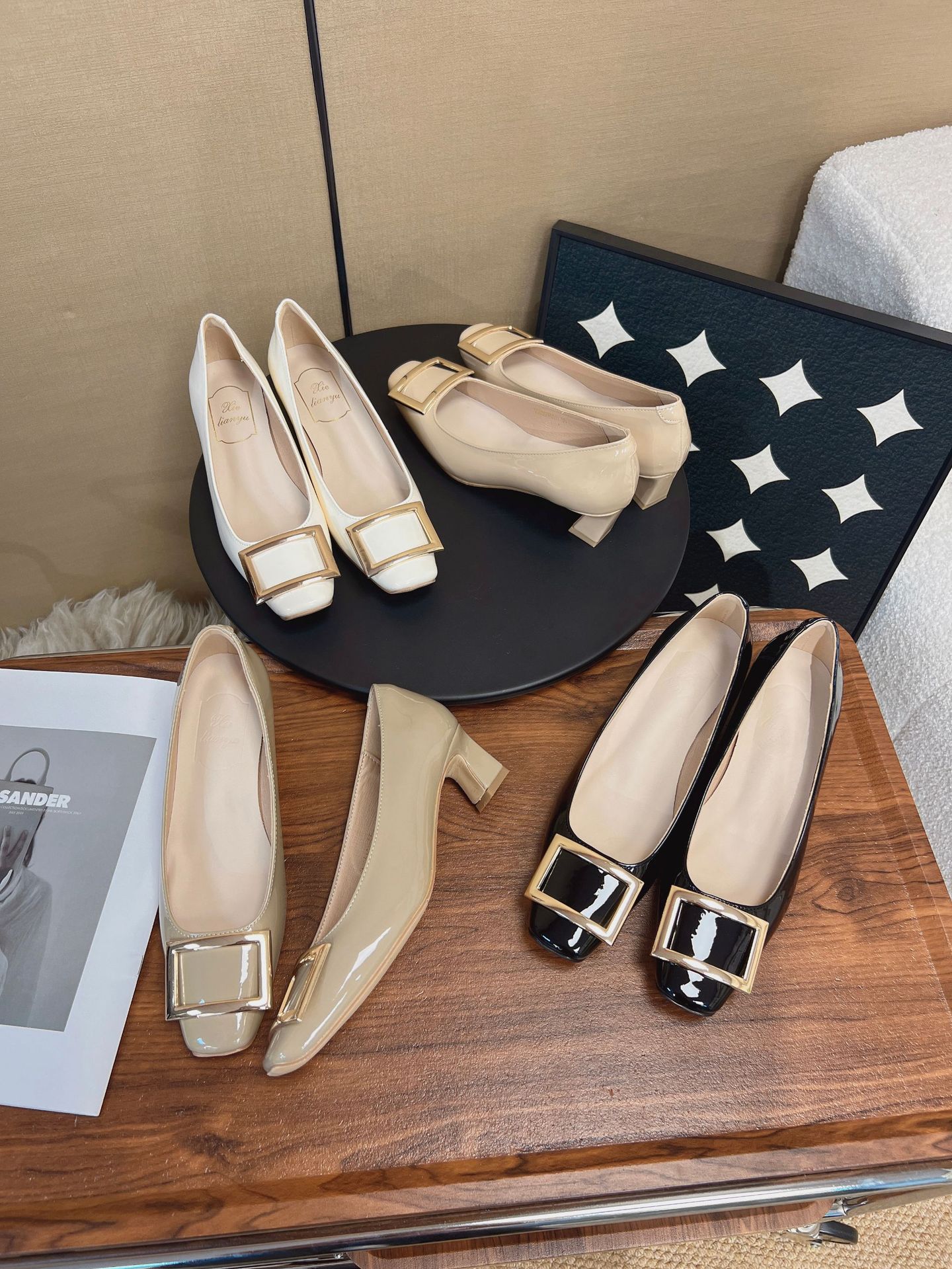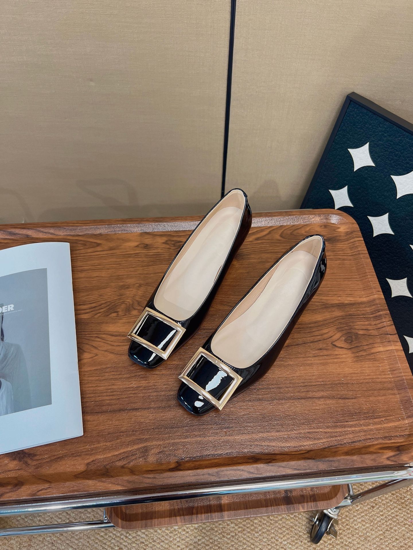 R가족과 같은 스타일의 출퇴근 필수템~ 클래식한 작은 사각코 로우힐, 우아한 사각 버클, 얕은 굽, 부드러운 밑창의 여성용 하이힐스토어 가기