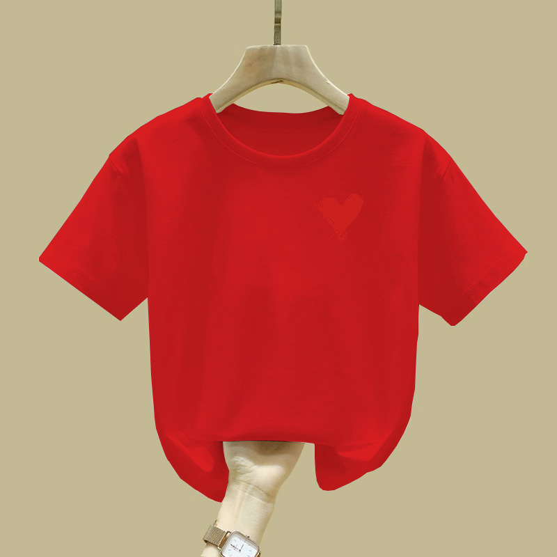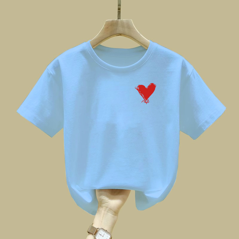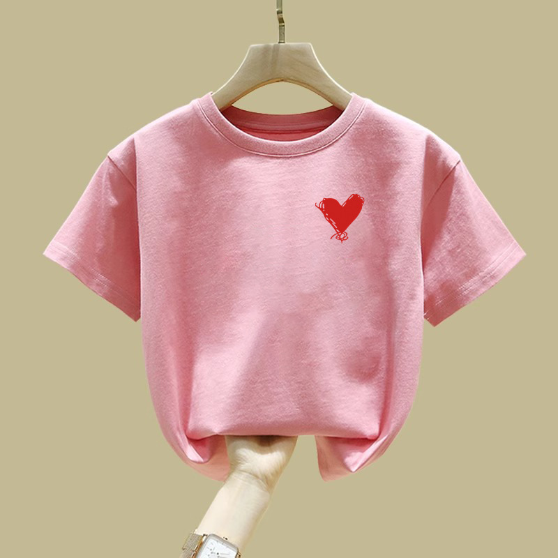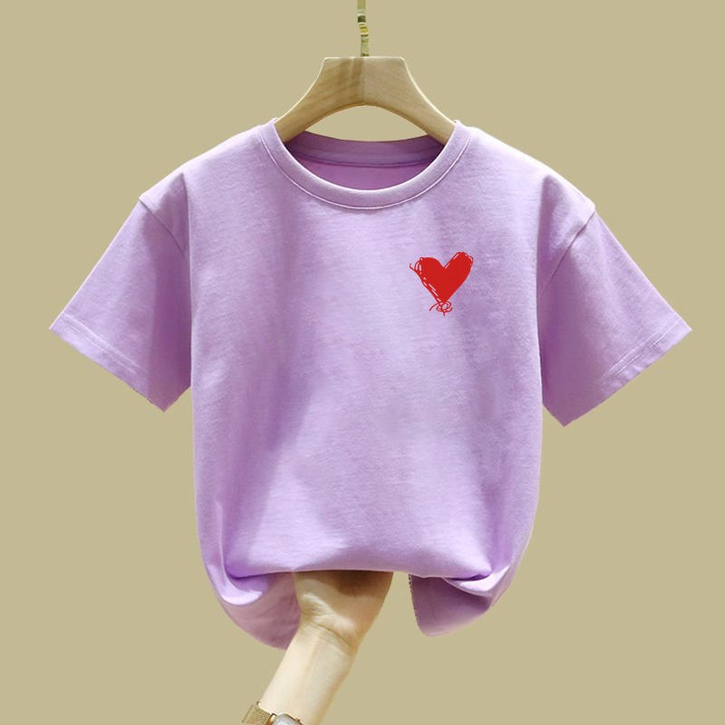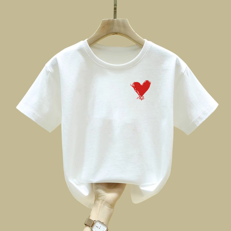 2457 # 여자 반팔 티셔츠 퓨어 코튼 티셔츠 새 여름 옷 서양식 반소매 큰 어린이 최고 어린이 여름 옷