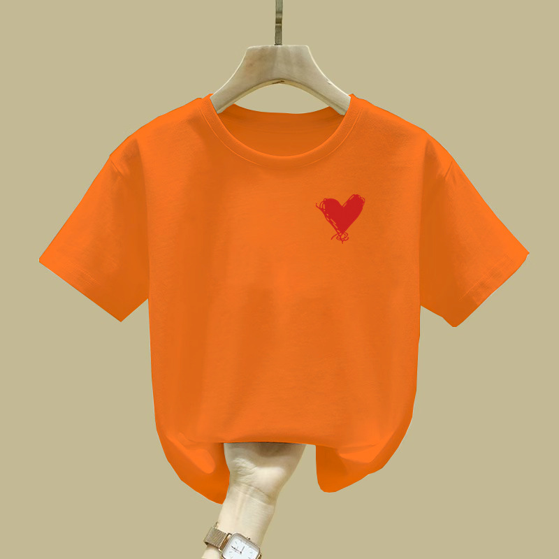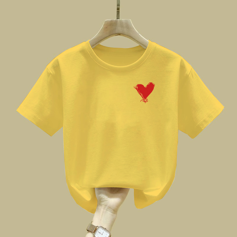 2457 # 여자 반팔 티셔츠 퓨어 코튼 티셔츠 새 여름 옷 서양식 반소매 큰 어린이 최고 어린이 여름 옷스토어 가기